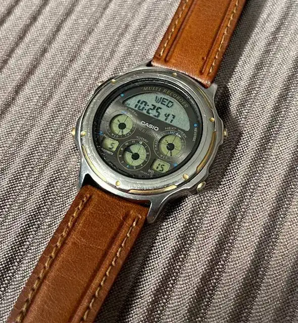 Empezamos el viaje con mi primer reloj, como no, un CASIO. Comprado en el viaje de fin de curso de EGB allá por el ´92 (si, yo también fui a EGB). Pensándolo hoy, representa el fin de la niñez. La primera vez que sales de casa sin tus padres, te montas en un avión camino de Tenerife con una cantidad "ingente" de dinero que recaudaste de todos los familiares posibles y que sólo tu decides como y en que gastar. En mi caso lo gasté en este Casio y en una recién llegada a España Nintendo Game Boy.