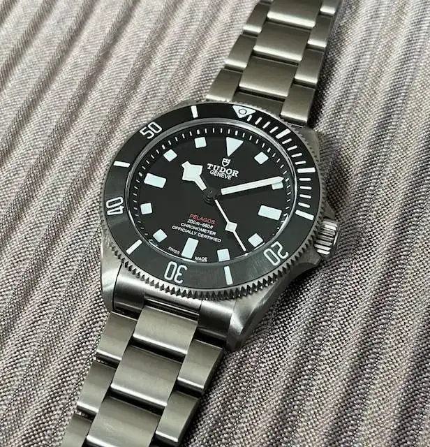 Y aquí mi ultima adquisición. Os habréis dado cuenta que, salvo el MOD, que apenas uso, no hay divers en mi colección actual. Pues aquí lo tenéis, un Pelagos 39 comprado por sorpresa por mi reciente cumpleaños durante un viaje en pareja a Tenerife. Ha sido el primer reloj que mi mujer me "obligó" a comprar!!!.
