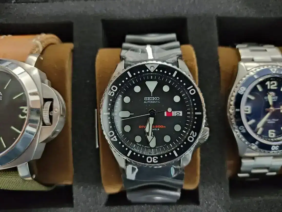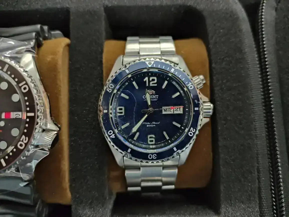 Luego el famosísimo SKX 007J que no he estrenado pero quiero hacerle unas mods que traigo en mente. Tras este mi primer reloj automático, el Orient, al que le cambié el cristal por uno de zafiro.