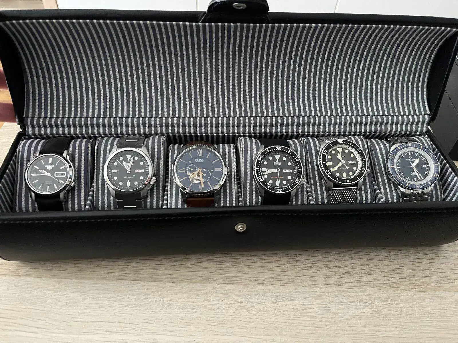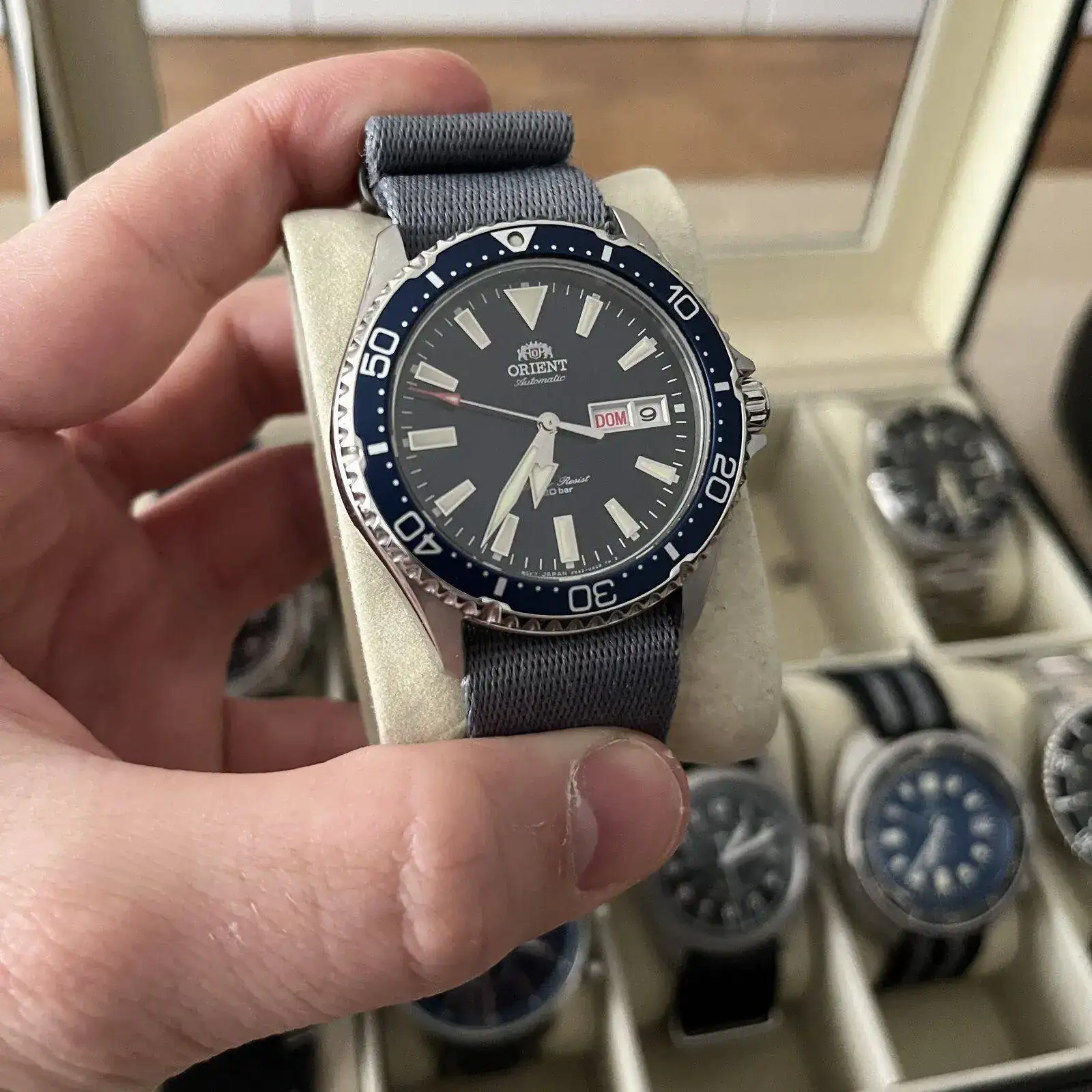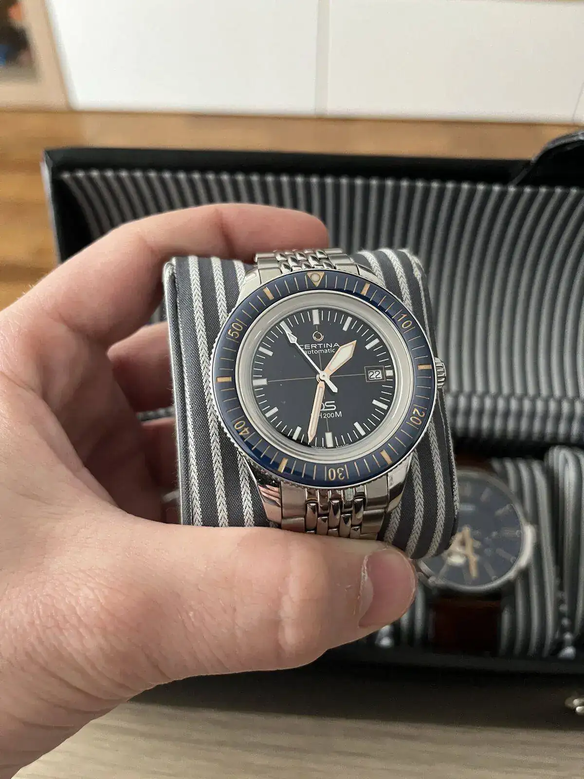 Para terminar de cerrar la caja, tengo un precioso CERTINA PH200m con bisel cerámico en color azul con un brazalete de granos de arroz de Uncle Seiko,que le queda como un guante, responsable de que ahora sea el reloj que más tiempo pasa en mi muñeca.