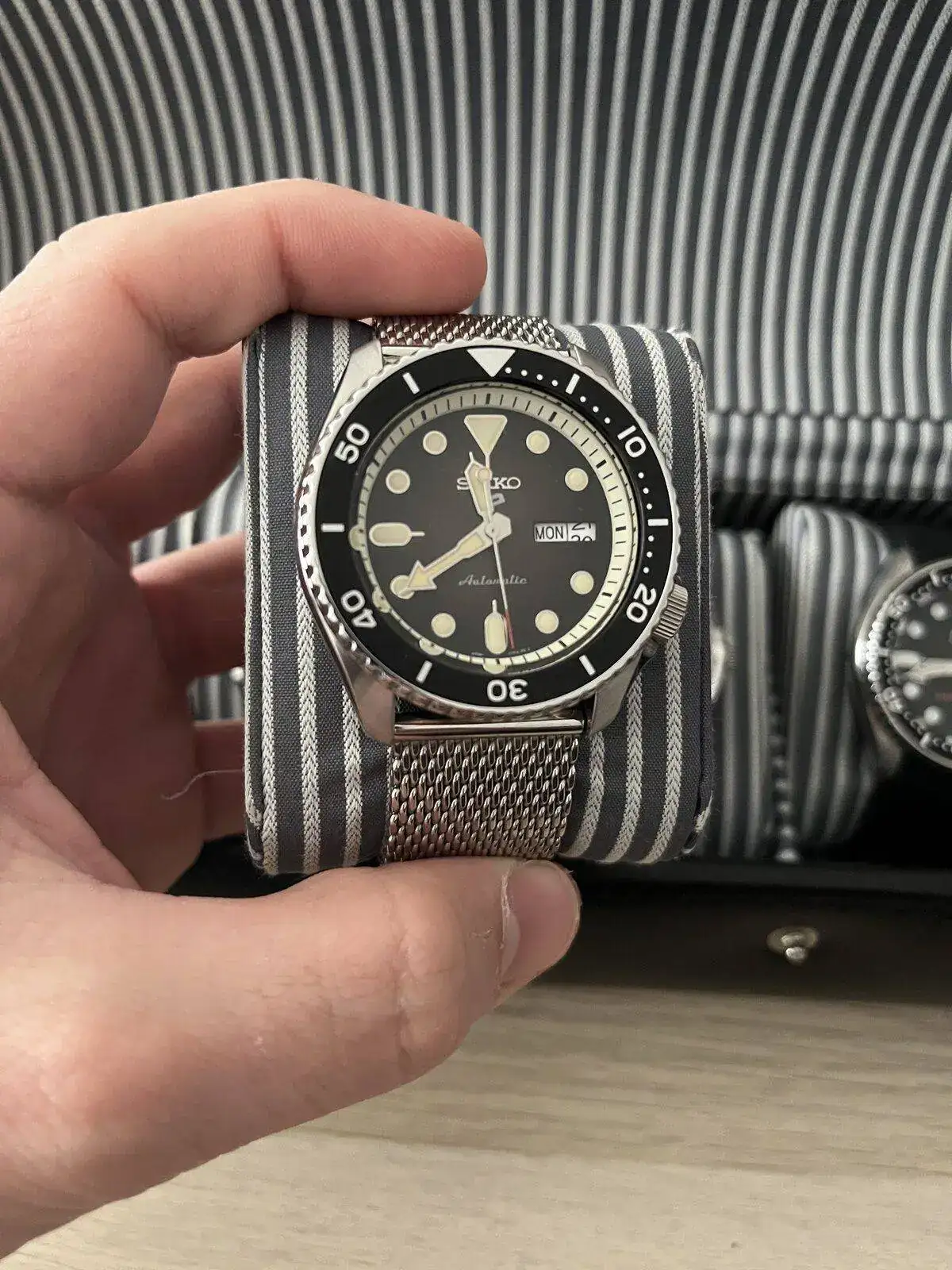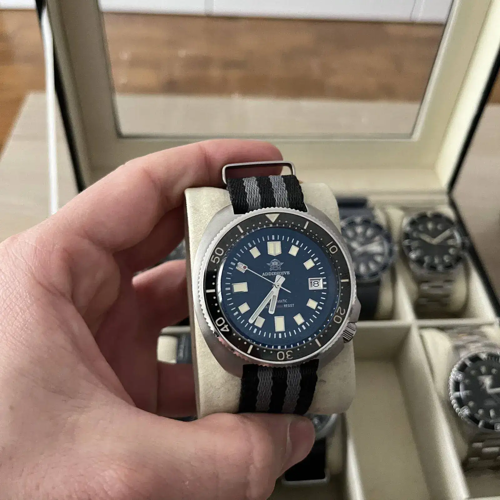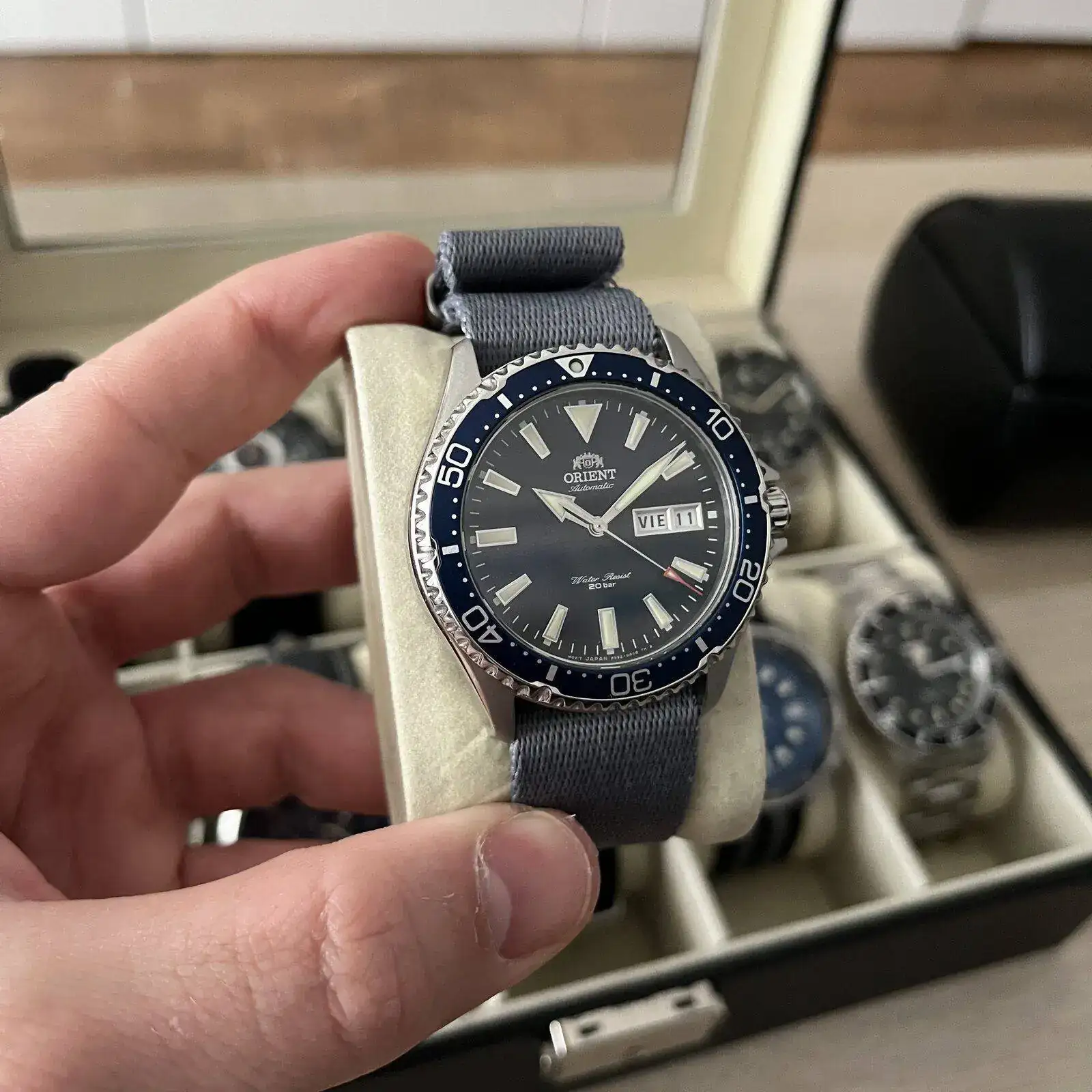 Para terminar de cerrar la caja, tengo un precioso CERTINA PH200m con bisel cerámico en color azul con un brazalete de granos de arroz de Uncle Seiko,que le queda como un guante, responsable de que ahora sea el reloj que más tiempo pasa en mi muñeca.