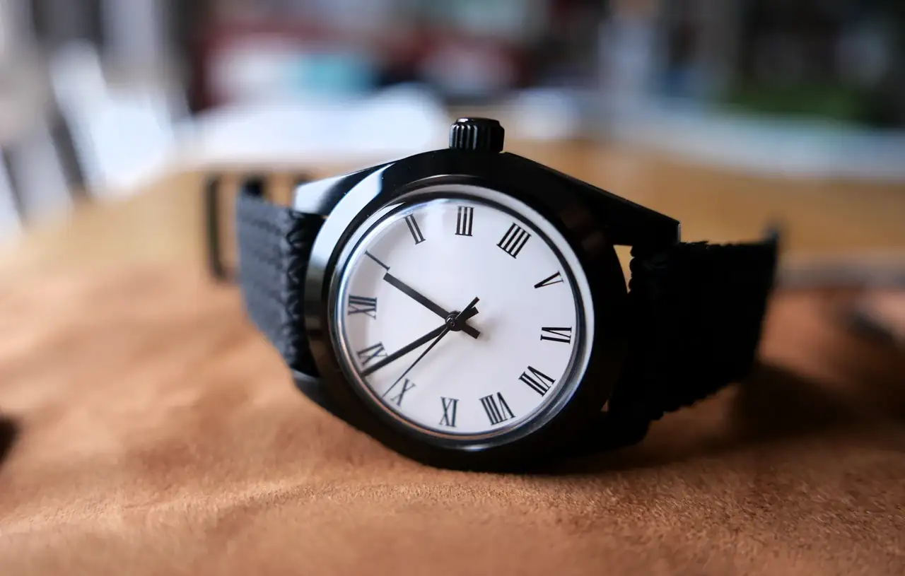 Siempre me ha gustado el contraste del blanco y el negro. Esta caja está muy bien diseñada ya que consigue ser muy fina para el movimiento que alberga. El contraste con la esfera clásica también me gusta mucho. La correa es un perlón de dos piezas de Eulit, mi favorita.