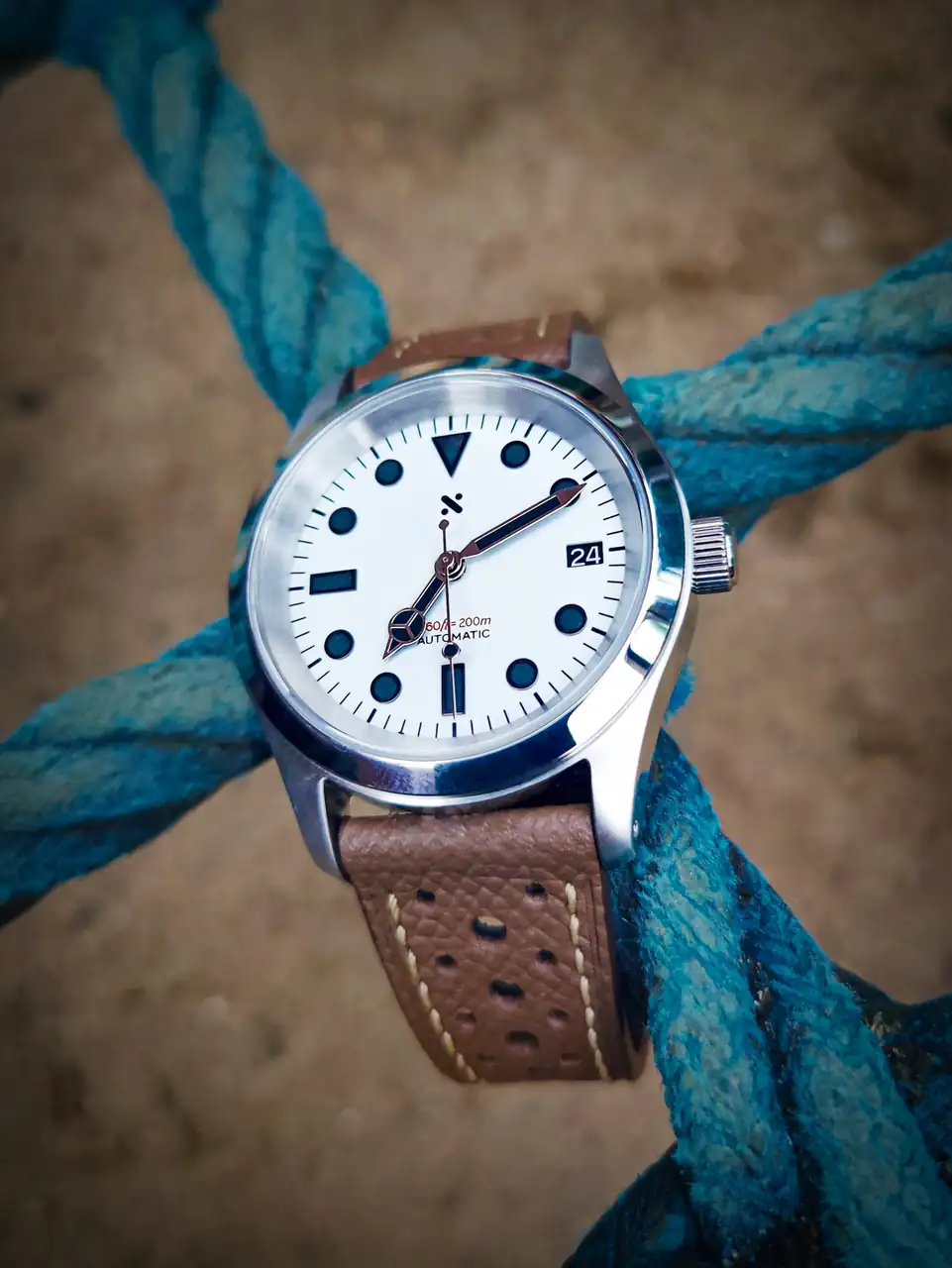 Tanto la caja tipo compresor como la esfera de Komo me enamoraron cuando las vi. Tenía que unirlas. Este reloj me hace sentir muy orgulloso ya que va a salir en el mes de diciembre del calendario del foro y gracias a él tengo en mi poder la última taza con las que nos obsequiaba Antón. Lleva una nato de un solo paso de Crevron Straps.