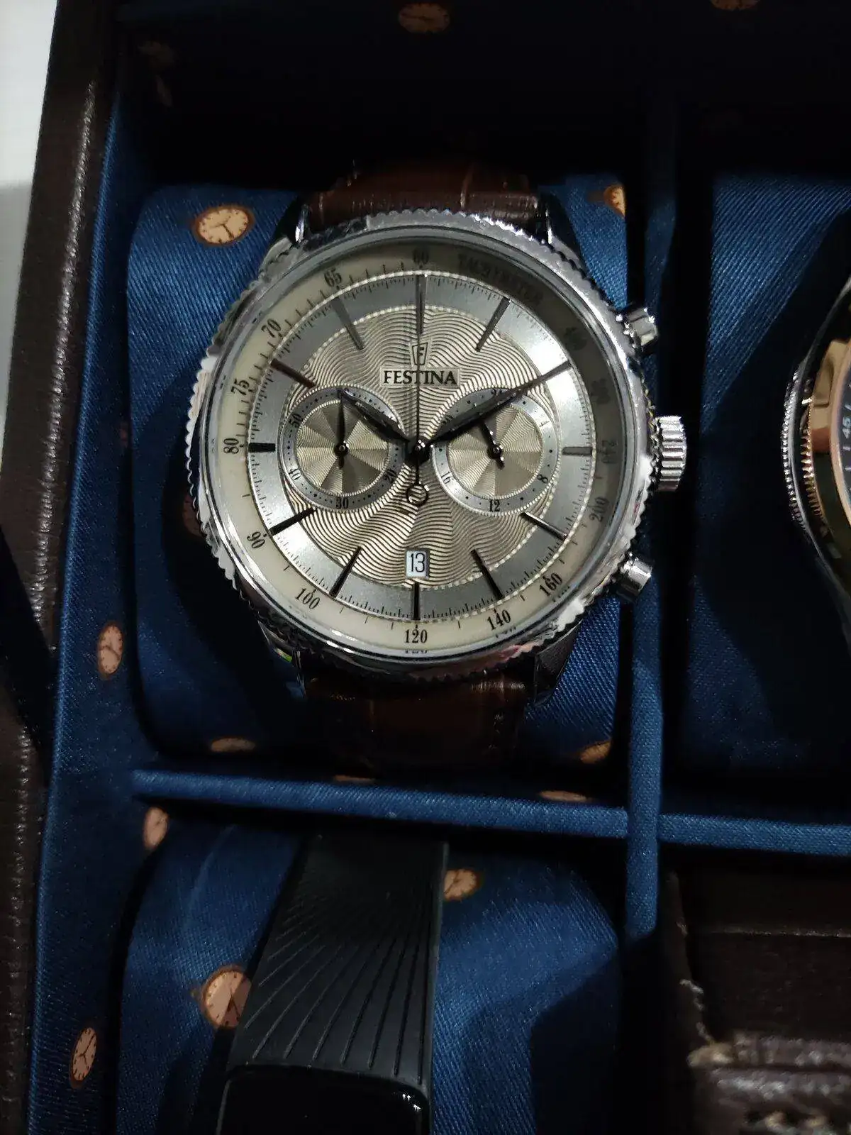 3. Festina F16893/7 Chronograph sport: para ir al trabajo despreocupándome de que se pueda estropear (soy profe y tengo la sensación de que la tiza del ambiente entra por la parte de la corona y reseca las juntas de goma -no sé si se llaman así- del reloj). Me gusta su aire retro y que tenga cronógrafo, lo que me resulta muy útil para medir el tiempo de las intervenciones de mis alumnos.