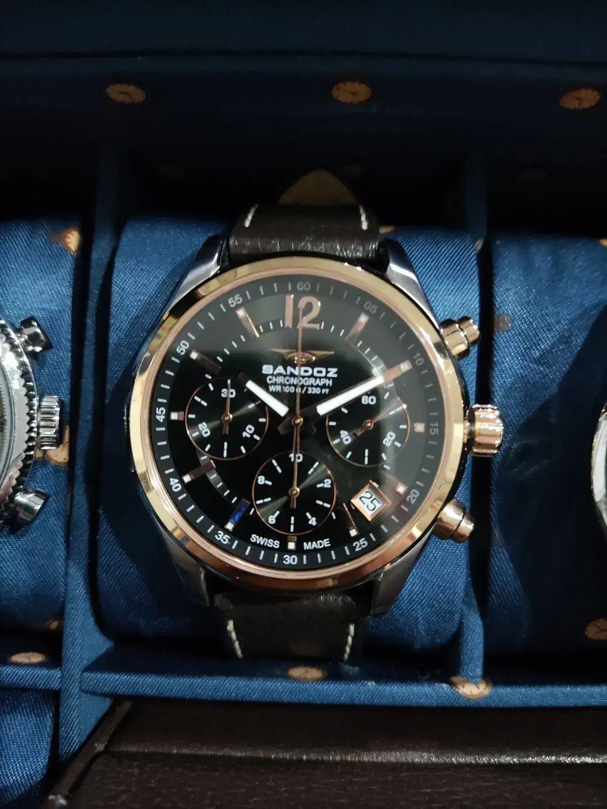 5. Sandoz Chrono Sport 81407-55: aunque también tiene mecanismo de cuarzo, me hizo ilusión porque era mi primer reloj suizo y con cristal de zafiro. Además es tan bonito como mi Hugo Boss y tiene un cronógrafo de verdad. Lo conseguí con un descuento muy bueno.