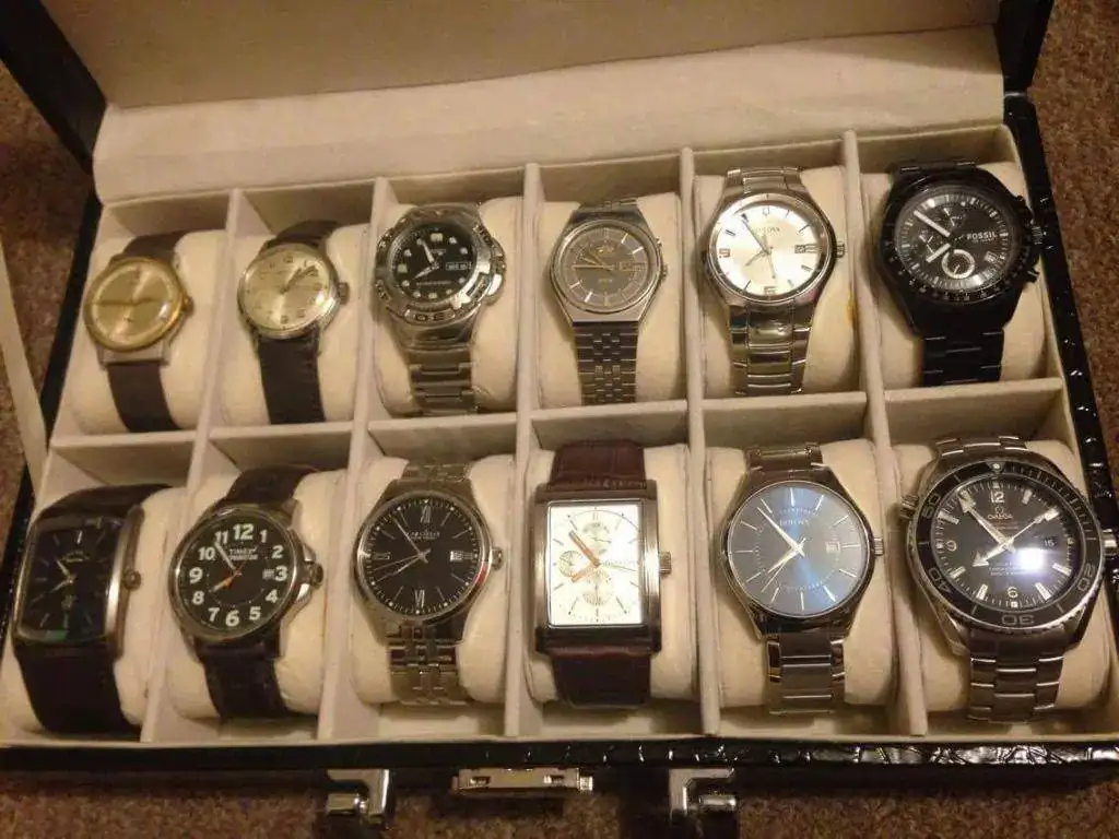 Aqui paso a mostrarles mis relojes con los que cuento. Actualmente no cuento con relojes caros, pero ahi ire renovando mi coleccion poco a poco vendiendo algunos para comprar otros de gama un poco mas alta. A ver que les parecen. Los del fondo que no se alcanzan a ver que relojes son... son un Zim, un Waltham y abajo un Polo.