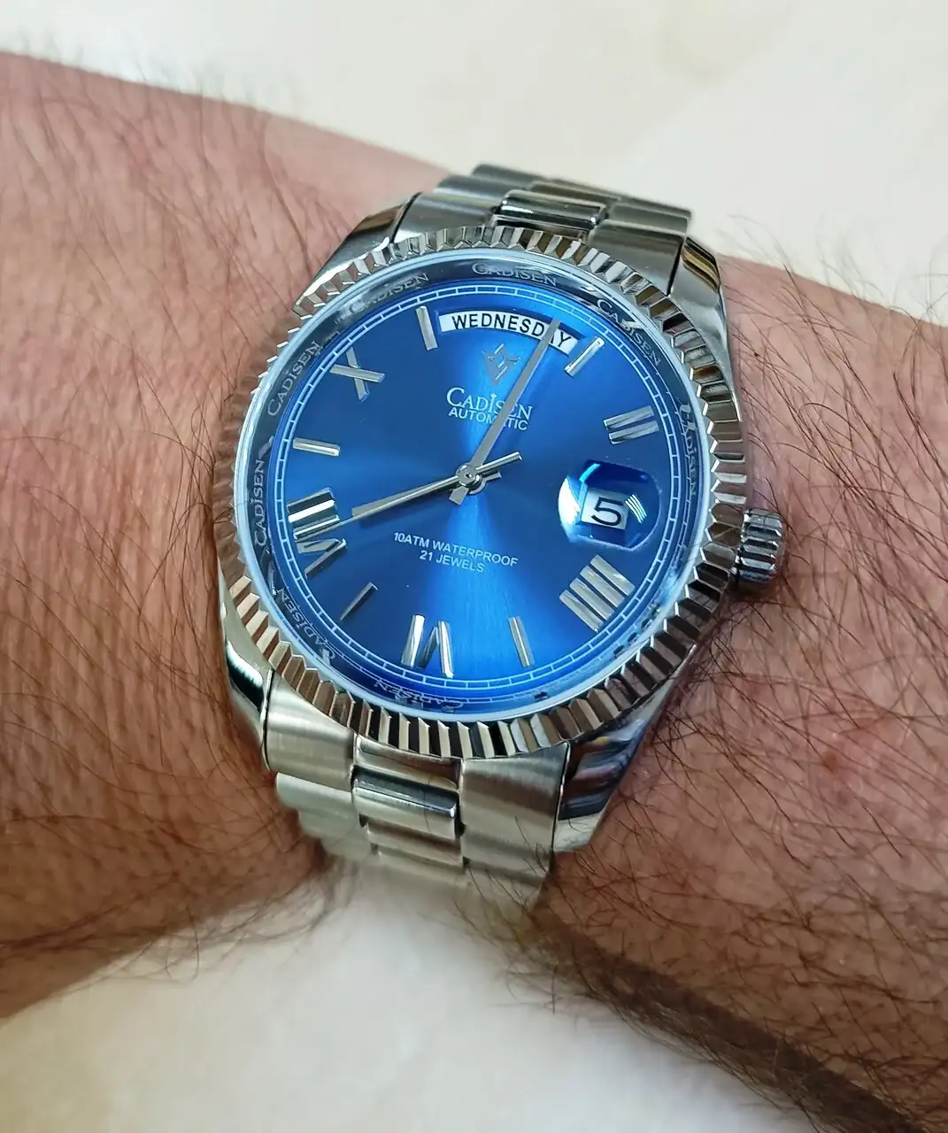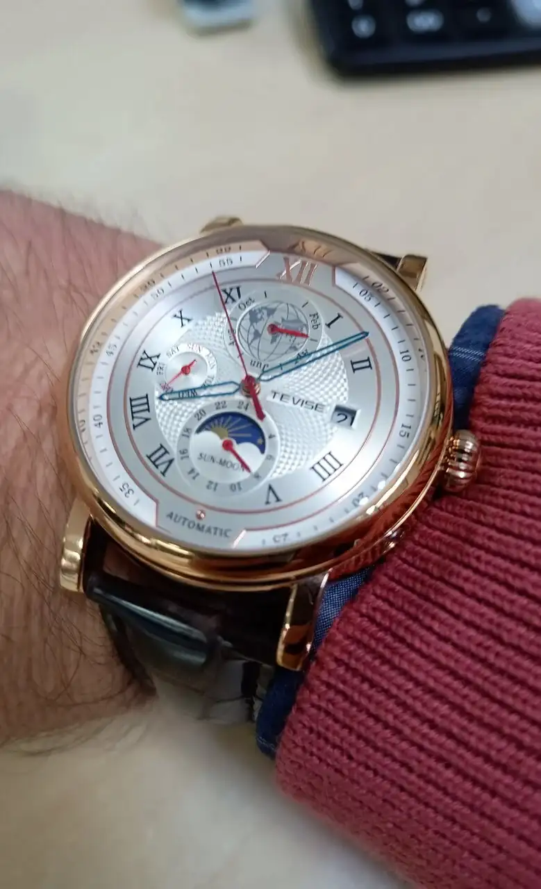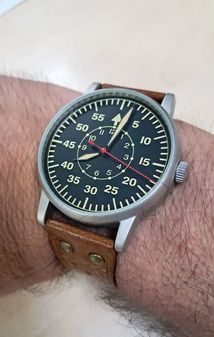 Un Tevise con movimiento automático, al que le he pintado las agujas de azul, el segundero en rojo y las pequeñas también. Venían todas en dorado y la legibilidad no era muy buena. Ahora sí se ven