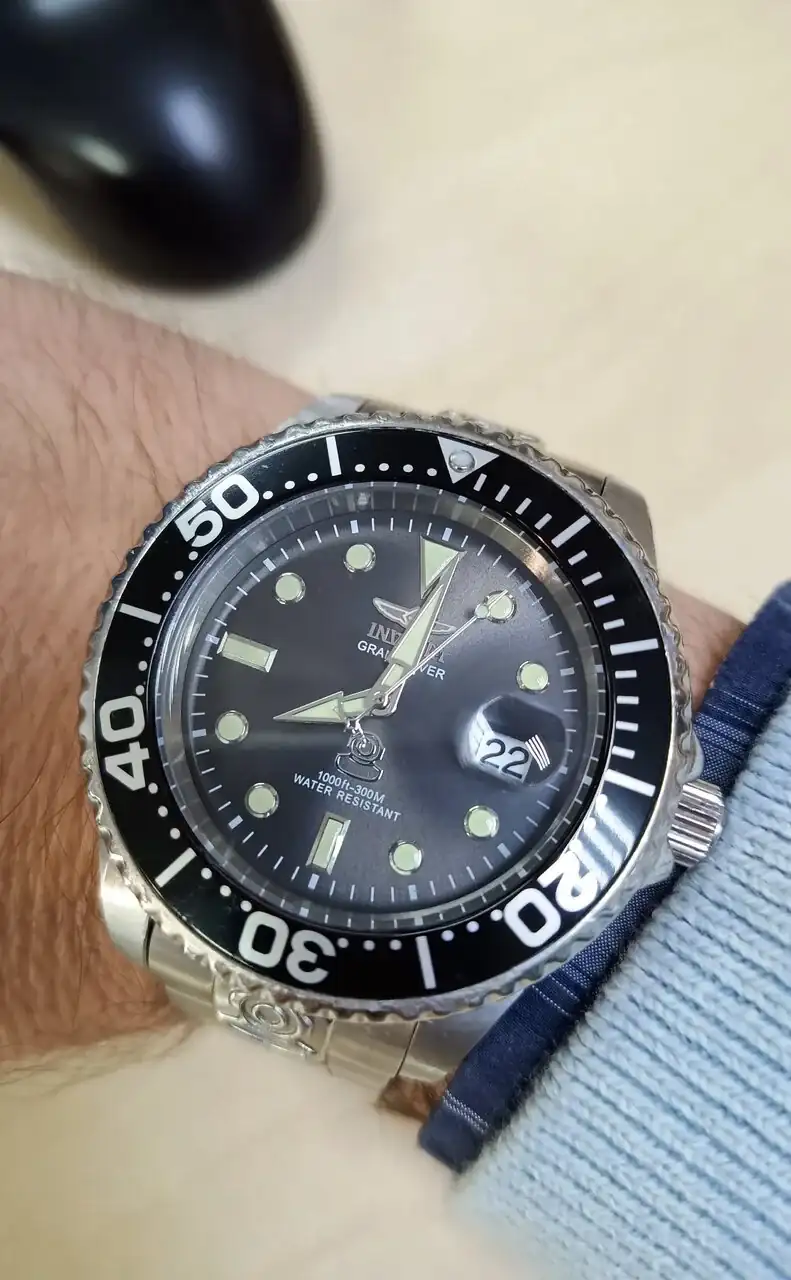 Un Invicta Grand Diver. Tamaño imponente y pesado. Se siente en la muñeca. Movimiento automático NH35
