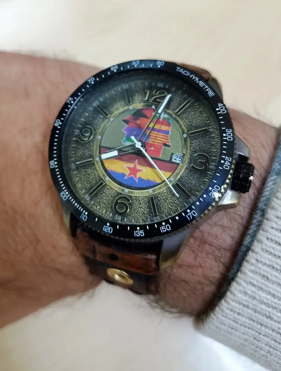 Este me lo regaló mi madre. Es un Tubular sin ninguna pretensión. Cuarzo normalito. Le he personalizado la esfera con la bandera de la República Española y el símbolo del Ejército Popular. Todo en homenaje a mi Abuelo, Comandante de la Segunda República.