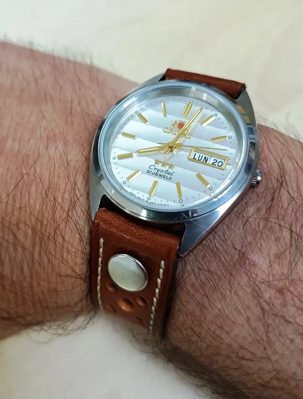 Un Orient Crystal, al que también le cambié la cadena que traía por ésta de cuero. La tengo guardada, ya que para alguna ocasión me gusta.