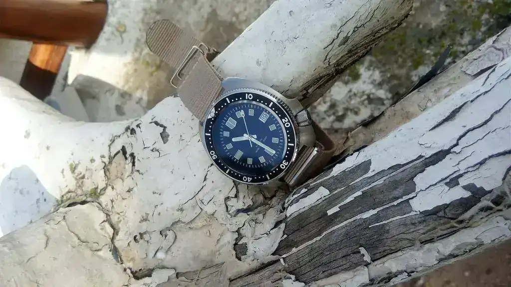 El primero que compré es precisamente el 6105 que os comentaba, cuando había que hacer piruetas para que los mandaran desde China, es un estupendo reloj. Como os comentaba le cambié el dial y las agujas por unas aftermarket de Seiko y les apliqué lume. Lo presenté aquí modificado y aquí sin modificar.