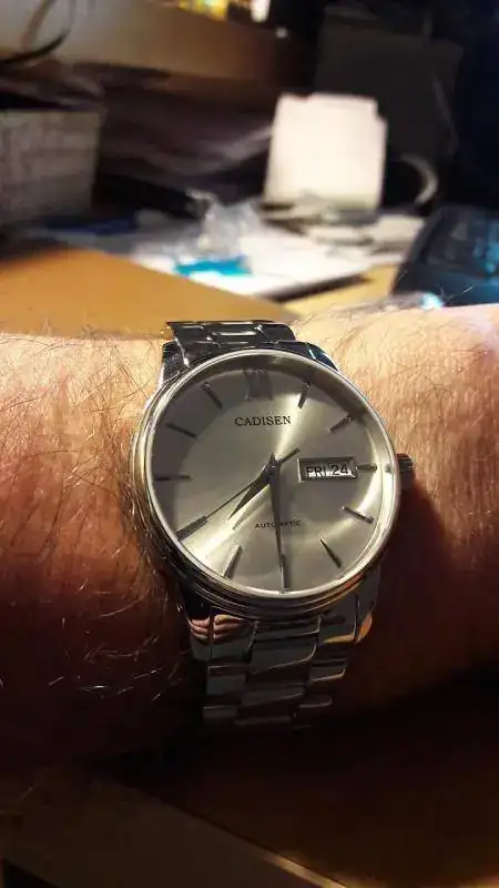 Volviendo al inicio, automático (con remonte manual), zafiro, fecha, buen tamaño de esfera sin un tamaño exagerado (diámetro 39 mm), movimiento Seiko (el mismo del Tortuga) y por menos de 50 €: Cadisen C1032