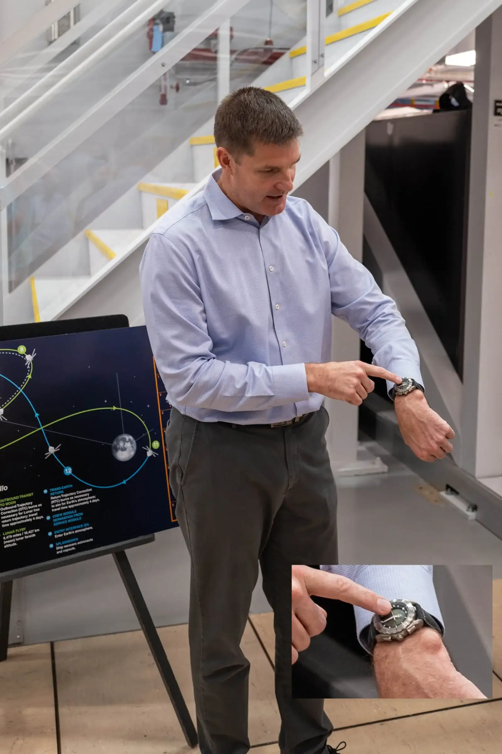 Pero ojo, spoiler, parece que no es el único Cosmonaute de la misión a bordo, parece que Hansen tiene uno y esto hace muy posible que de los dos que lleva Koch uno sea un Navitimer (se ve menos tocho). No sé hasta qué punto tendrán cierta “oficialidad” como el Omega, pero el Navitimer tiene mucha tradición entre pilotos, lleva hasta Scott Carpenter y en el espacio es donde más útil es un 24h para no perder la noción.