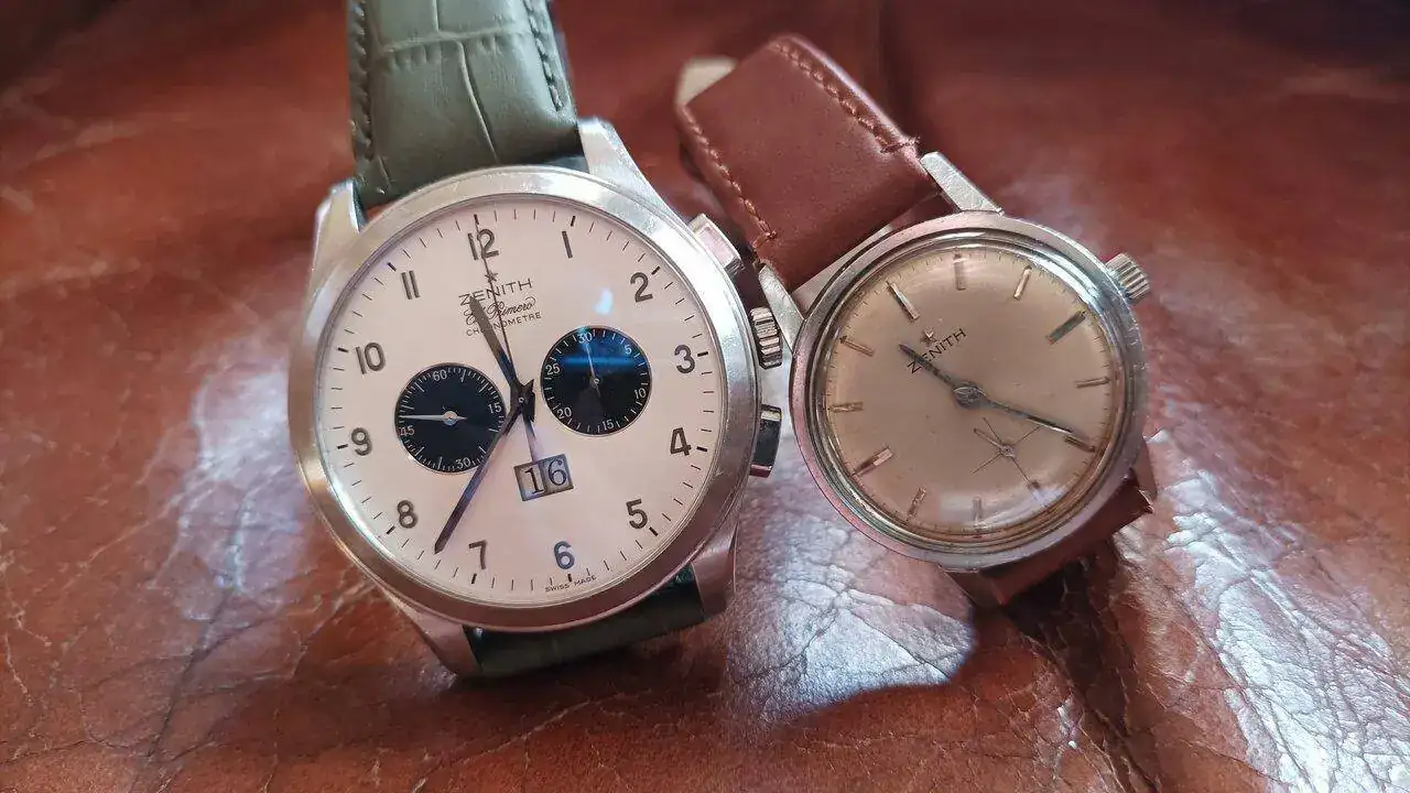 Un Primero, deportivo automático, del 2011,acompañado de un elegante, tres agujas, de cuerda manual de los 50.