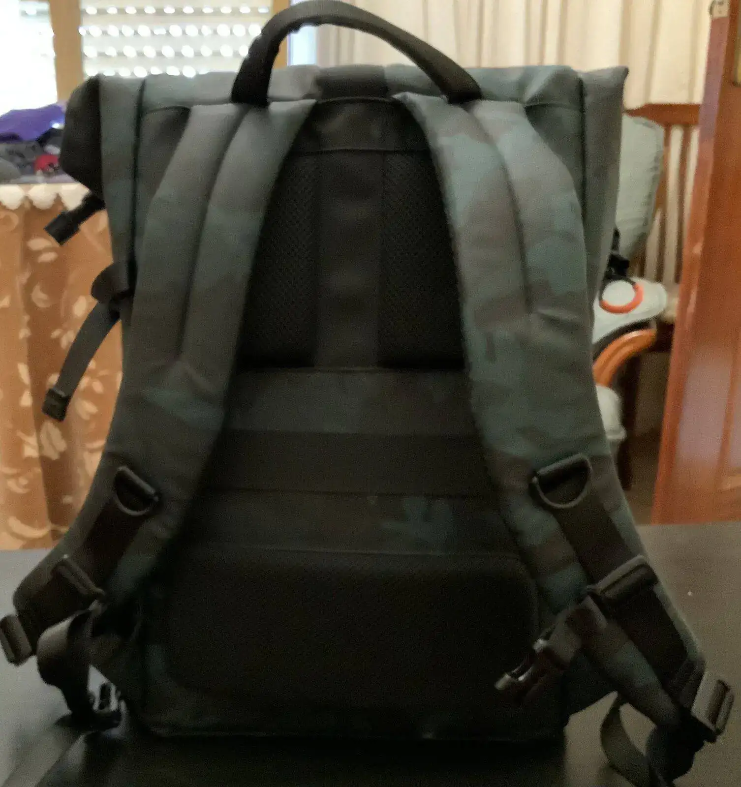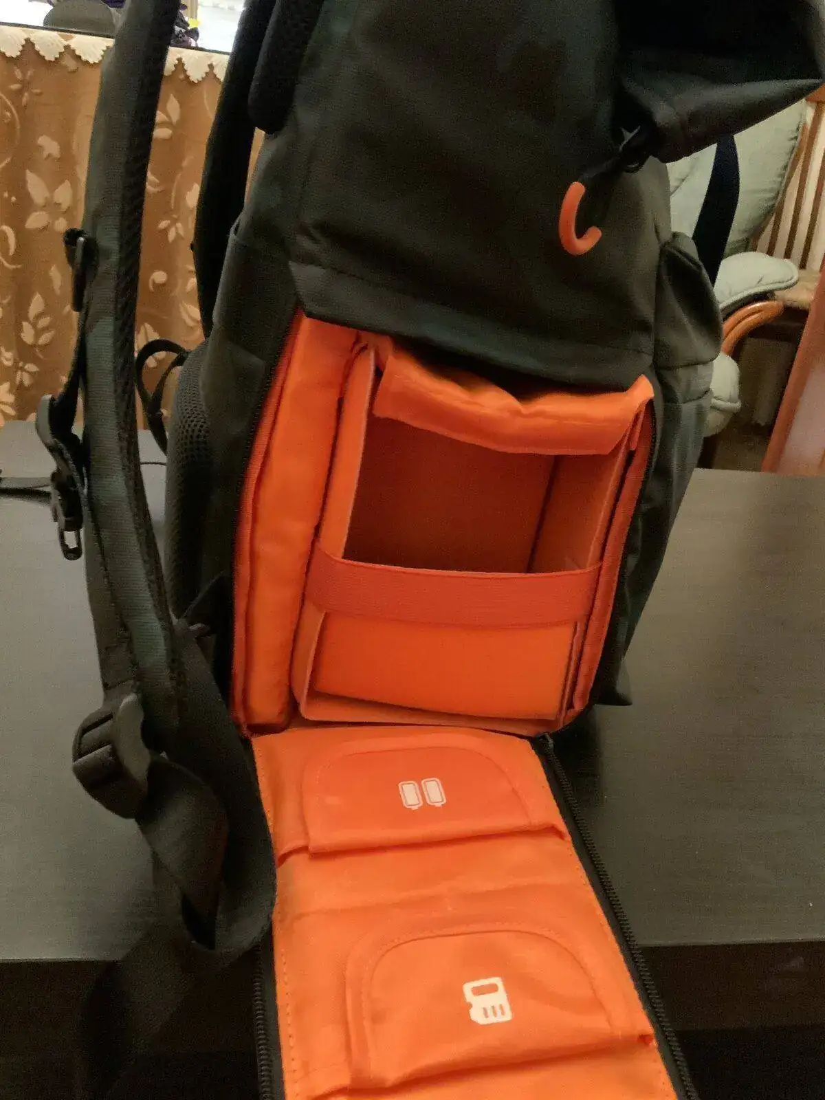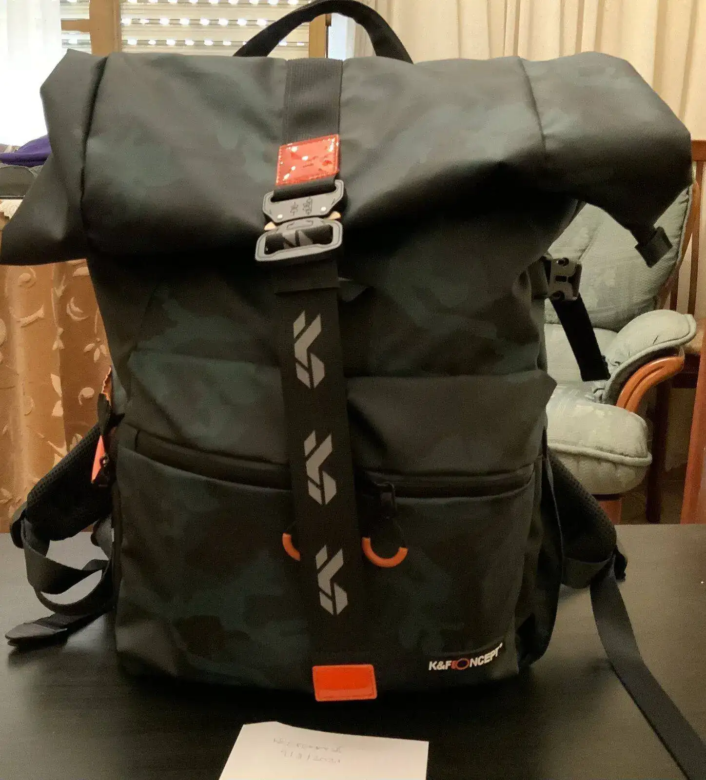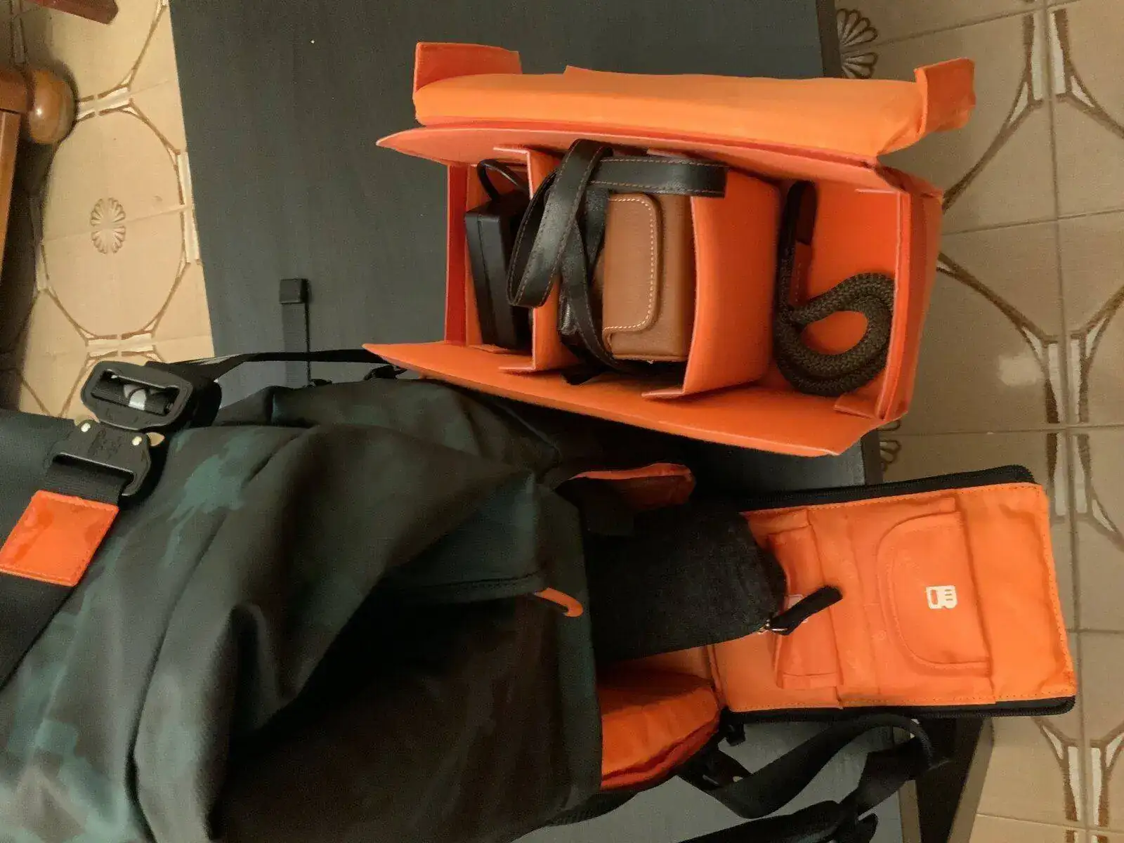 k@f concept es una de las marcar míticas dedicadas a la fotografía profesional. Vendo una maravillosa mochila de fotografía ( o de lo que quieras). Mide enrollada 45 de alto por 34 de ancho y 24 de grosor y tiene un compartimento acolchado extraible especial para transportar cámara, objetivos, cargadores, tarjetas de memoria etc. Dentro tiene un hueco para portátil, iPad o lo que quieras llevar. Está súper acolchada , es totalmente impermeable. Tiene bolsillos por todos lados y es la pera limonera. Es estampada con pauta de camuflaje marino en azules y verdes y naranja por dentro. Está nueva y conserva sus etiquetas.