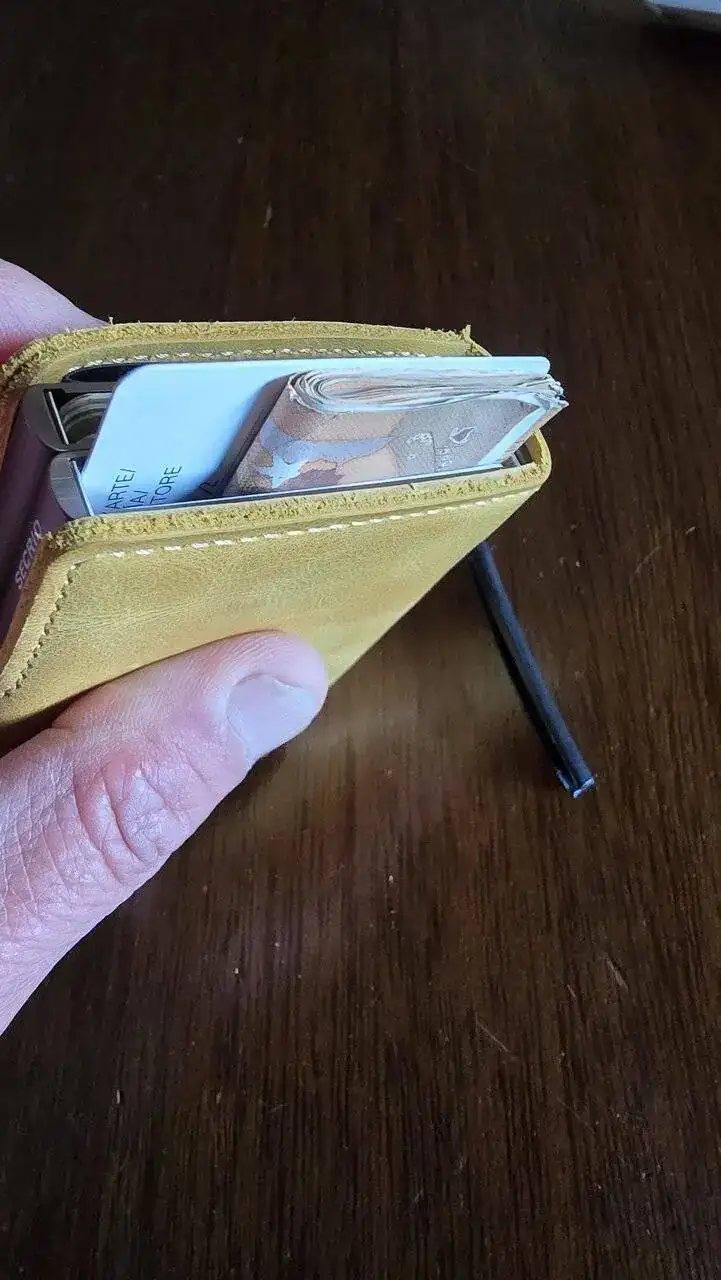 1 cartera de la marca secrid con doble tarjetero , hay otras marcas , pero estás con doble tarjetero son ideales para este fin..