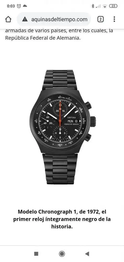 Según se lee a pie de la foto del reloj es el primer reloj íntegramente negro de la historia.