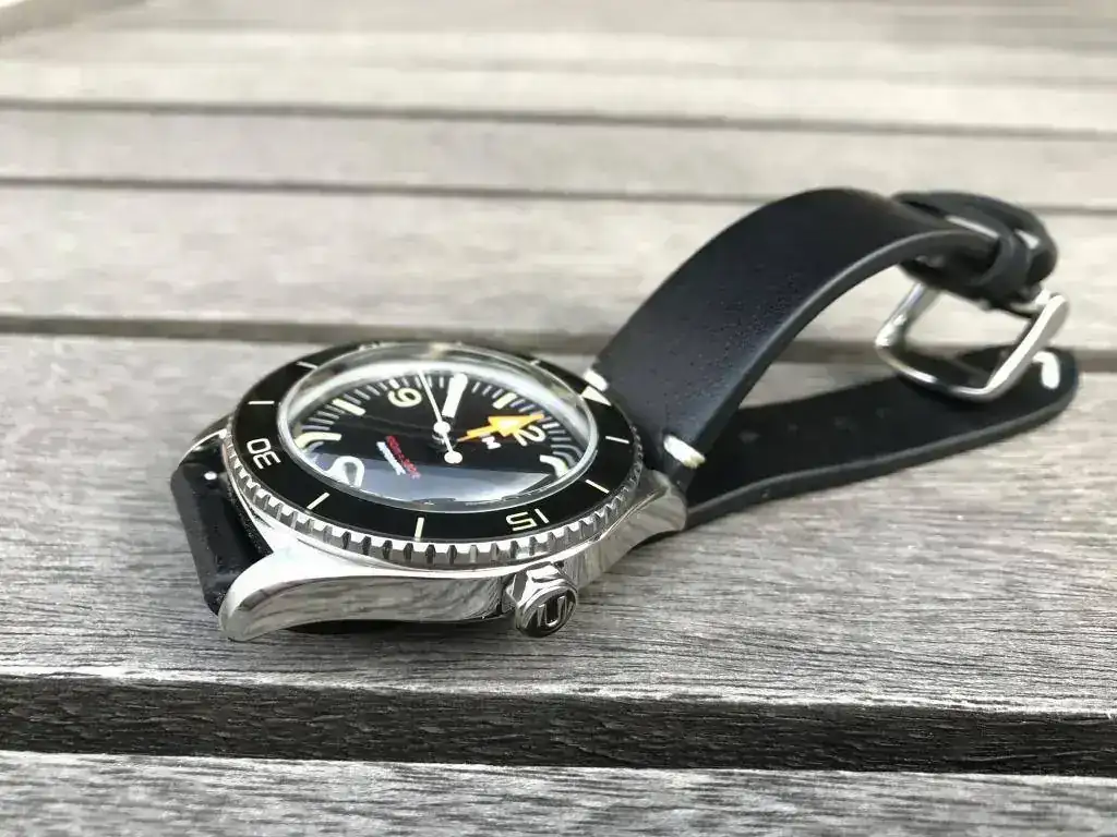 El tamaño es bastante contenido y con el bisel, para mi muñeca, lo veo perfecto. Por lo que se refiere al grosor, parece mucho 15mm pero no es así, más de 3mm se deben a la convexidad del cristal, que es muy abombado, así que no es demasiado grueso después de todo. En ningún momento da la sensación de "tocho", al contrario se hace muy ponible con camisa por ejemplo.