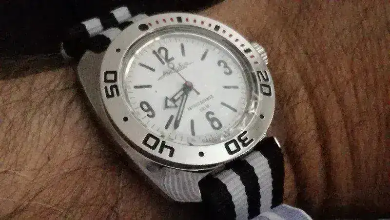 Me explico. Cojo una bonita caja 710, con su bonita NATO blanca y negra..