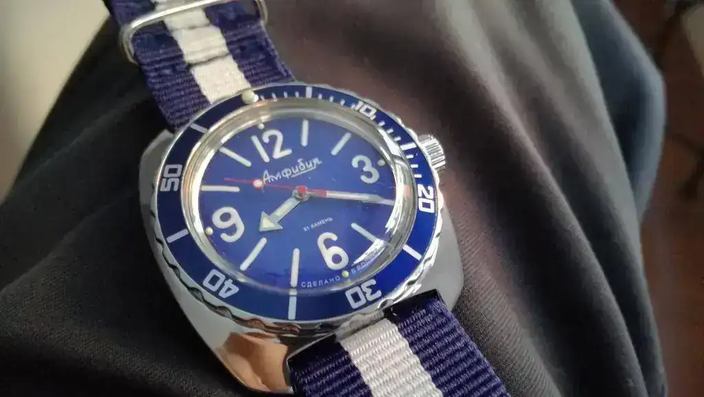 Mosqueado, compruebo la página de la tienda y... que vale para los komandirskie 65 o así. Ni rastro de mención a los Amphibia...