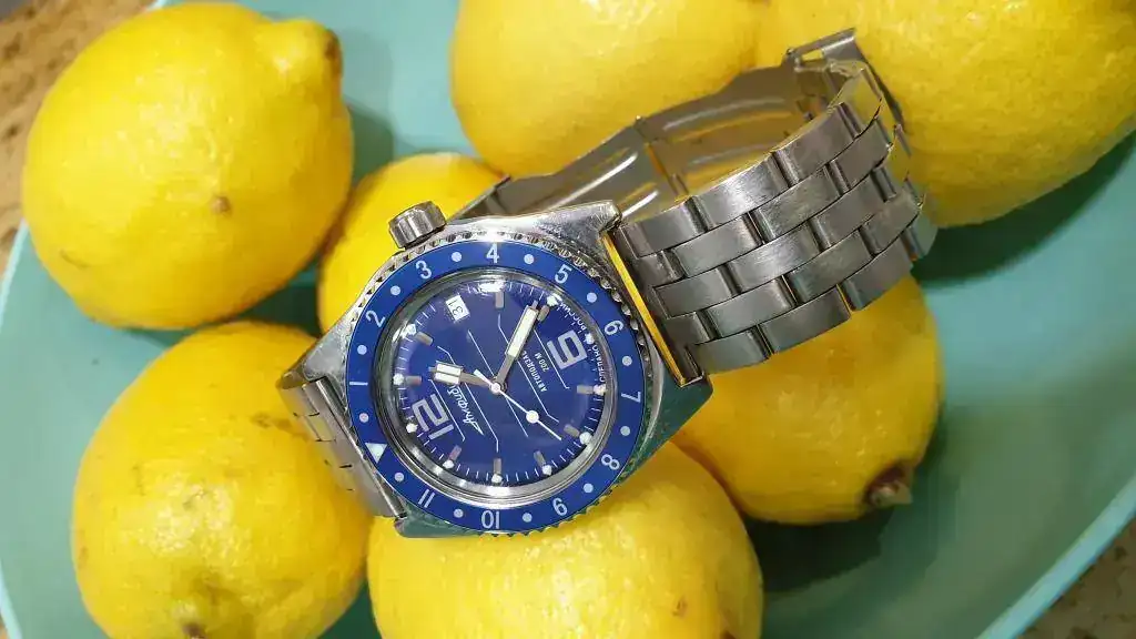 Las agujas retro le dan una vistosidad dificil de explicar como entre novedoso y viejo ( vintage ) , el insert azul con escala 12 horas numeros e indices es de ebay de un tipo de Moldavia , 1 mes esperando pero ha merecido la pena porque tiene un brillo electrizante . A ver si preparo una camara digital y os mando fotos en archivo RAW