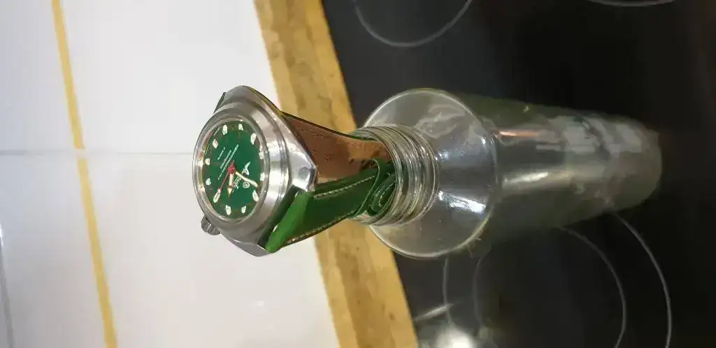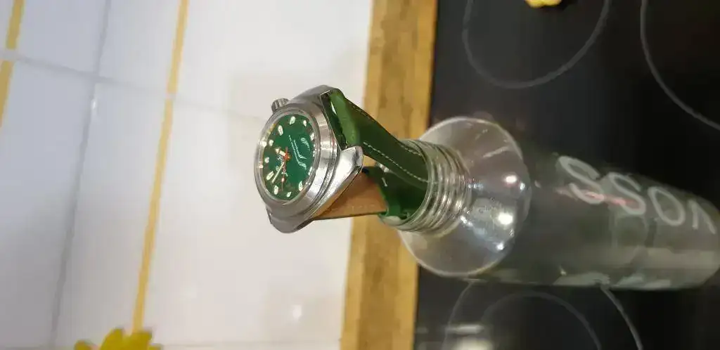 Es el mismo reloj pegando con photosop con bisel negro tal vez quedaría mejor una correa negra también o negra con raya roja, me gusta, pero creo que me sigue gustando mas con el bisel de latón!