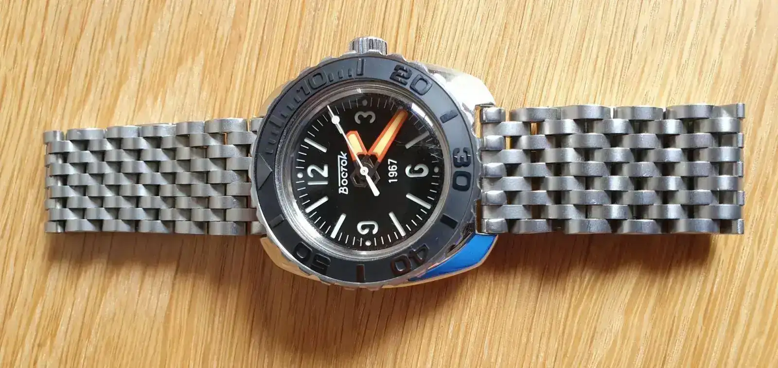 Great job!!Dial es de eBay de Moldavia, pulsera de Aliexpress, manos de S. Trifonov y segundas manos de Favinow. Pulsera arenada. Lo monté yo mismo. Voy a arenar el cuerpo