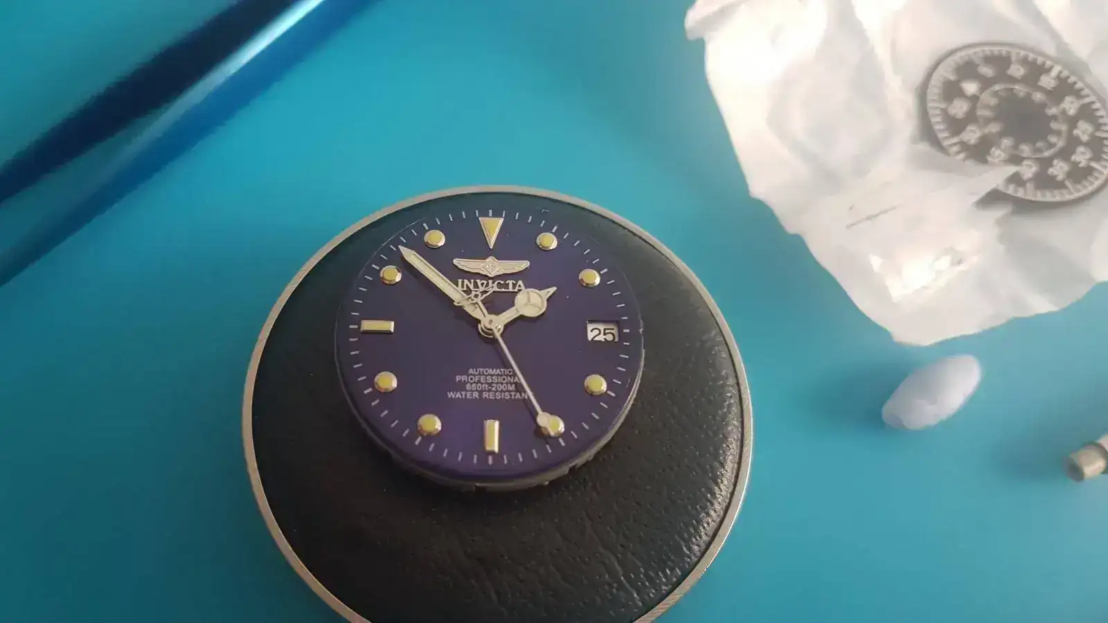 El reloj me llegó por un cambio y como ya tengo un invicta grand diver(3045) del mismo color el cual por dimensiones me gusta y pongo más pues para no relegar este a un cajón me propuse modificarlo un poquito. Tenía en mente dejarlo con un estilo pilot y hacer un arenado, pues bien os muestro el proceso lo mejor que puedo y sé, a ver si os gusta.