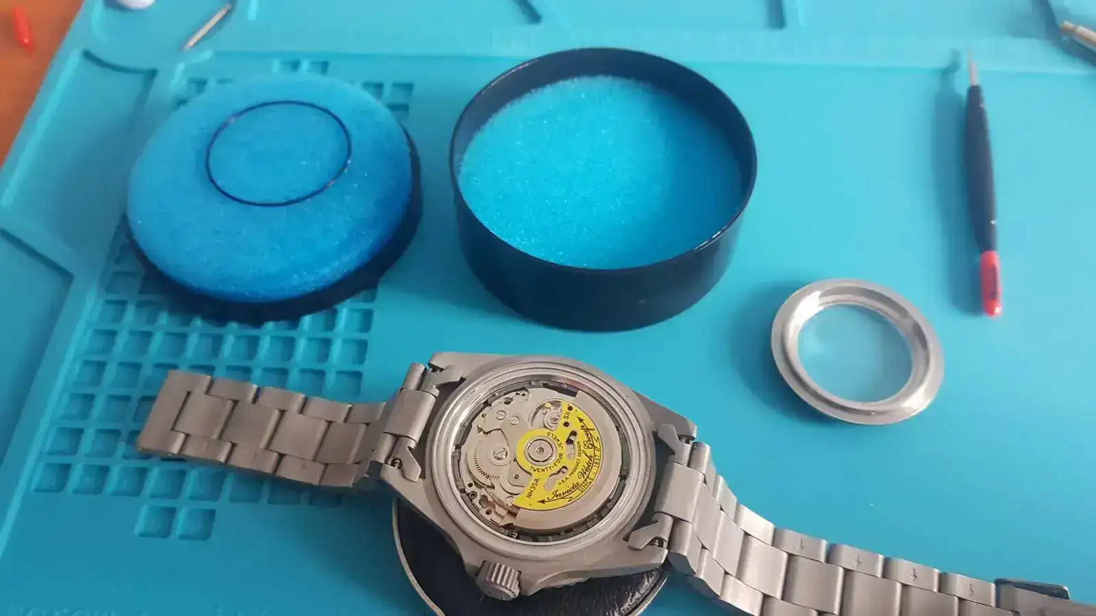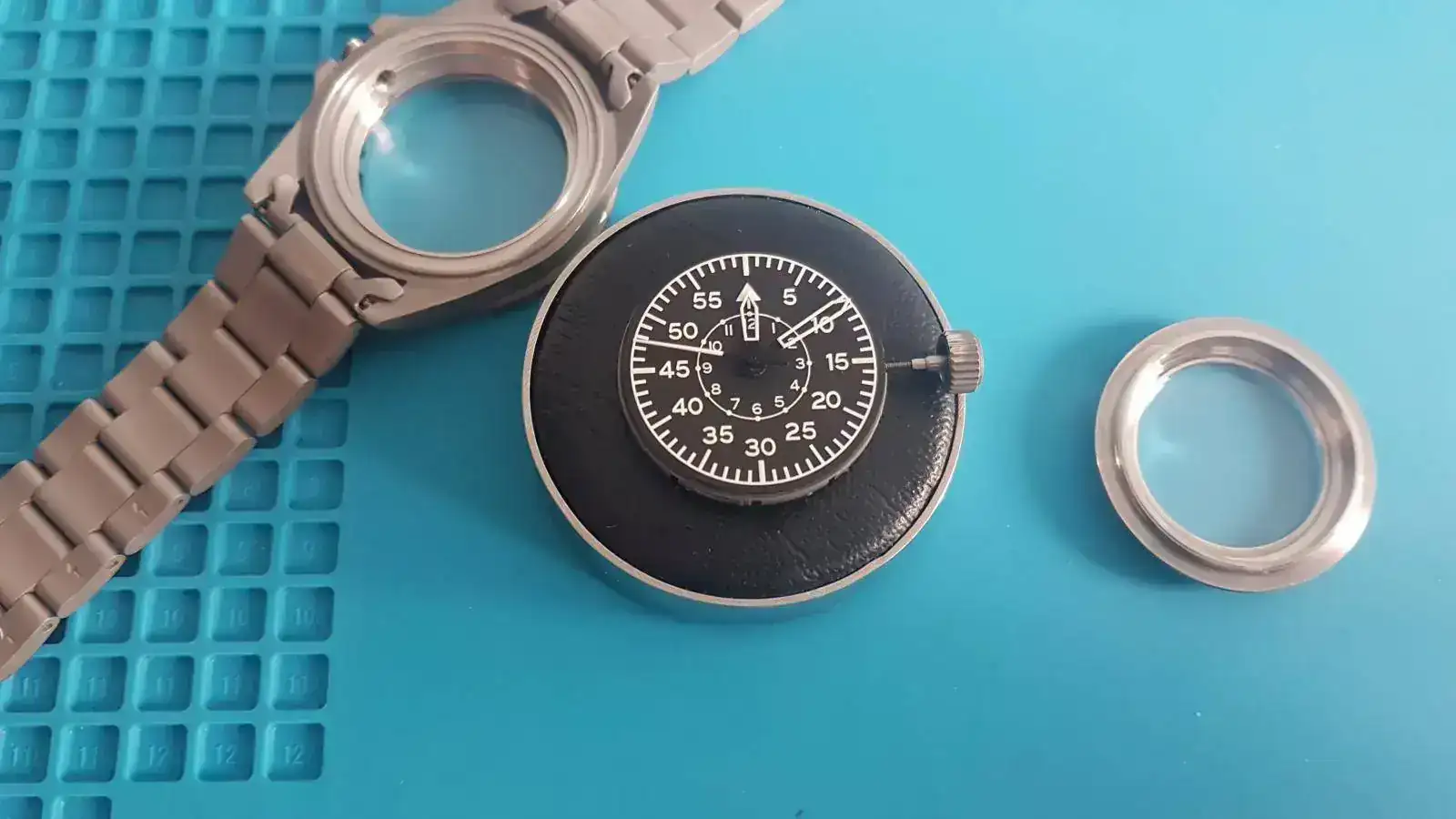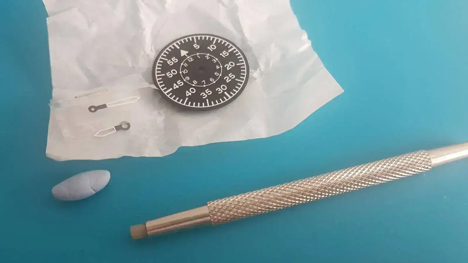 En cuanto a "arenao" "finiquitao", ahora pasamos al cambio de dial y agujas, por cierto supongo que ya os habréis fijado pero después de arenar también cambie el bisel azul por uno negro y rojo que me parece que pega más con el dial de aviador de la luftwaffe por el cual finalmente me decanté.
