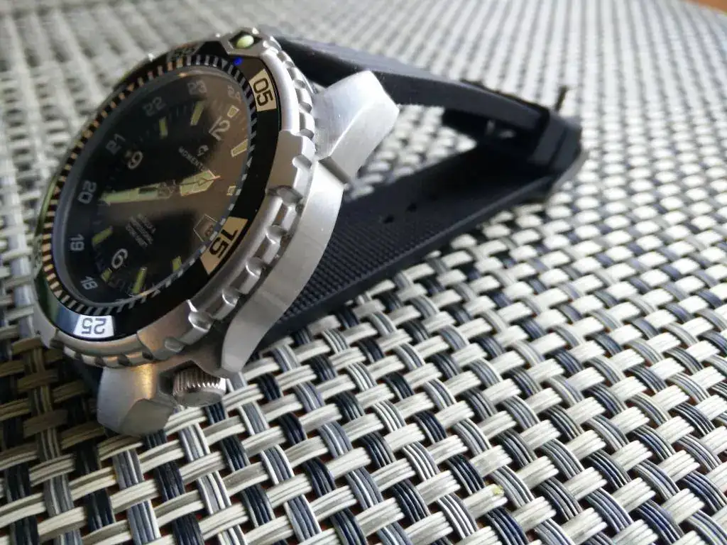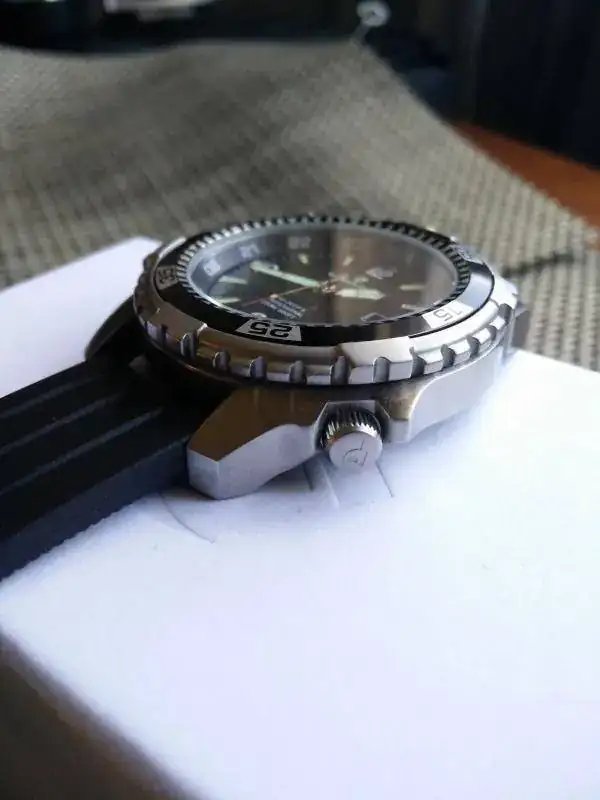 Es un reloj contundente resistente al agua 200 metros, acero 316L y de muy facil lectura con una esfera preciosa.Bisel de 120 clicks. Corona roscada.