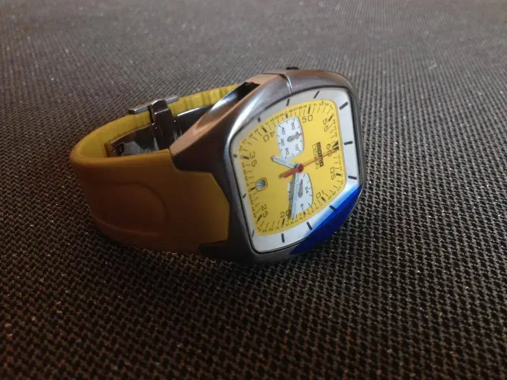 El reloj está recién revisado en RABAT, funcionando a la perfección, y donde le han cambiado cristal (en las fotos se puede apreciar el plástico protector), la pila y la correa. Está como nuevo, con levísimas marcas de uso en el cierre, inapreciables. Un reloj a estrenar a menos de la mitad del valor de nuevo.