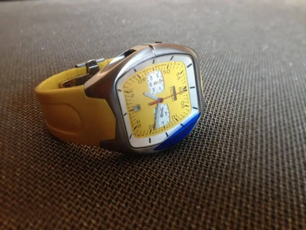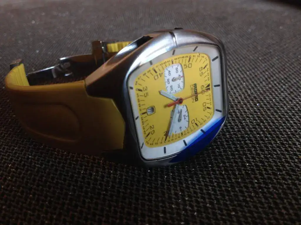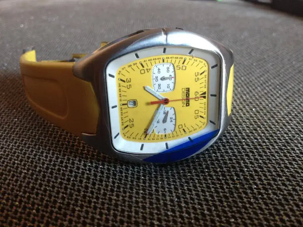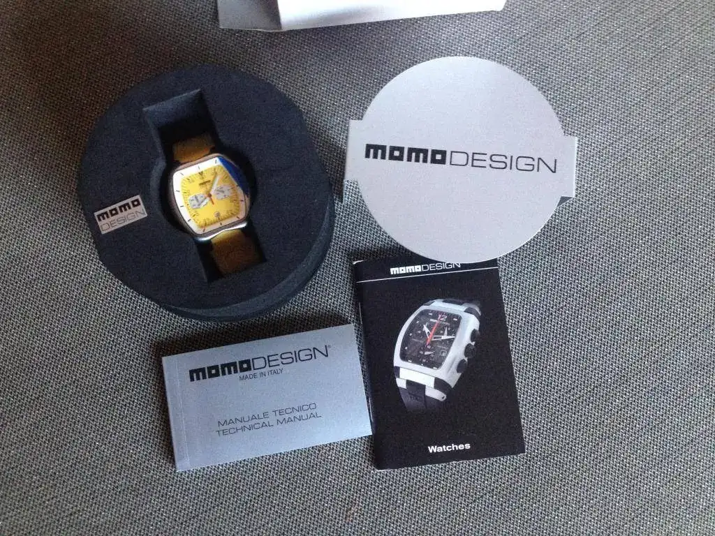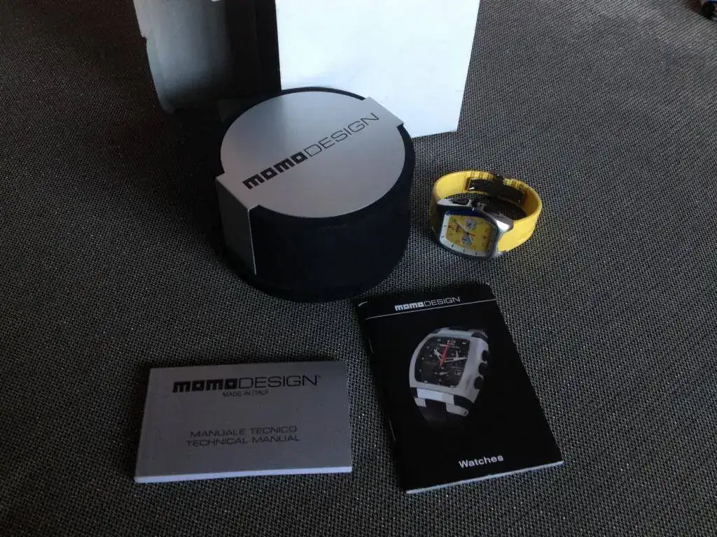 [TD]Magnífico cronógrafo deportivo de 5 ATM fabricado por MOMO Design, la prestigiosa marca de accesorios de automoción que ha dejado inolvidables piezas, no ya sólo en el mundo de las cuatro ruedas, sino también para la historia del diseño industrial.