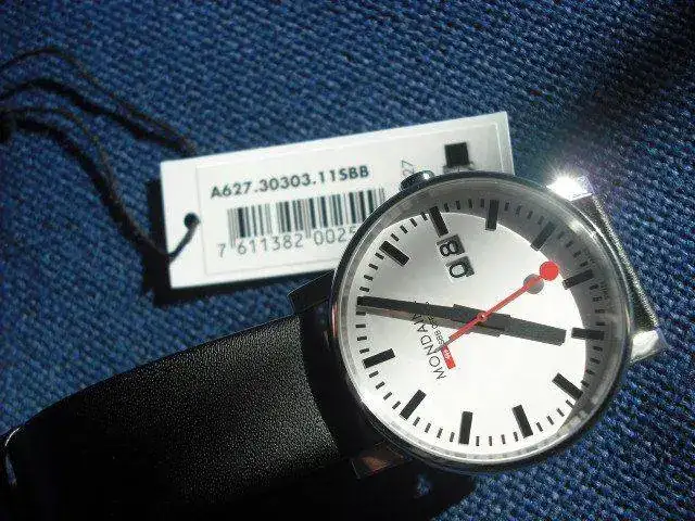Adquirí este reloj hace un par de meses, nuevo, enamorado de la estética de esta marca. Sin embargo, no me lo he llegado a poner, no se si por tener otros relojes de más categoría, o porque ya no me acostumbro a llevar un cuarzo. El caso es que el reloj está nuevo, sin usar. Me lo he puesto el día que lo compré. La correa ha cogido la forma redonda porque lo tengo metido en una caja de relojes. Solo tengo la etiqueta que se ve en las fotos, en la que se ve la referencia con la que podéis ver sus características. Las imperfecciones que se puedan ver en las fotos, son motas de polvo y marca los dedos al manipularlo para las fotos.