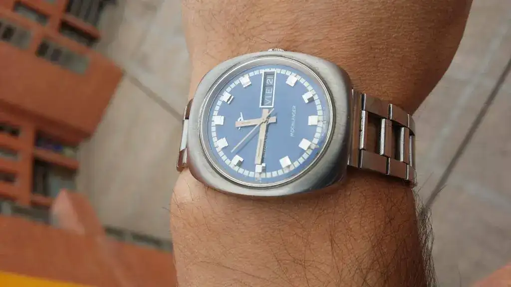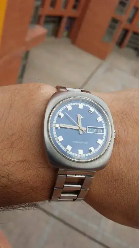 El calibre, por lo que he leído, es un AS con fecha y día. Es muy curioso porque la fecha se cambia pulsando la corona. Hasta donde yo sé, es de principios de los 70.