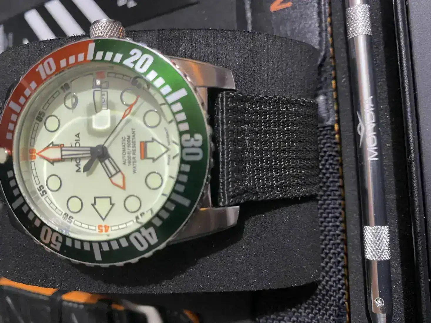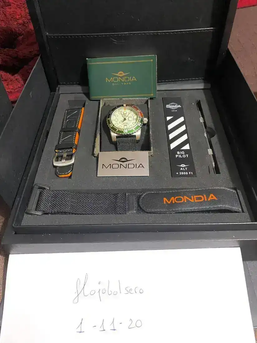 Saco a la venta un mondia sub 500 metros en excelente estado, tan solo tiene algun pelillo en el acero pulido. Lleva lleva 3 correas, 2 de ellas originales y una herramienta para el cambio de las mismas. La caja tiene algún desperfecto del tiempo y la documentación va sin rellenar. Priorizo la venta pero podría plantearme cambiarlo por un tissot prs516 automatic. Cualquier cosa podéis escribirme un mp.