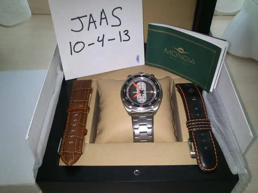 Pues eso como soy culo inquieto pongo para cambio este Mondia Triuphm totalmente de reestreno, garantía sellada de marzo 2013 el reloj viene con toda su dotación correa tipo rally con pespuntes naranjas y otra marron, el armis no viene incluido se estudiaría su venta 42mm de caja 22mm entre asas sumergible 10atm, bueno ahora las fotos gracias a todos por llegar aquí y a RE por el espacio ofrecido.