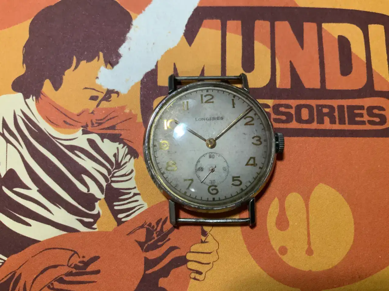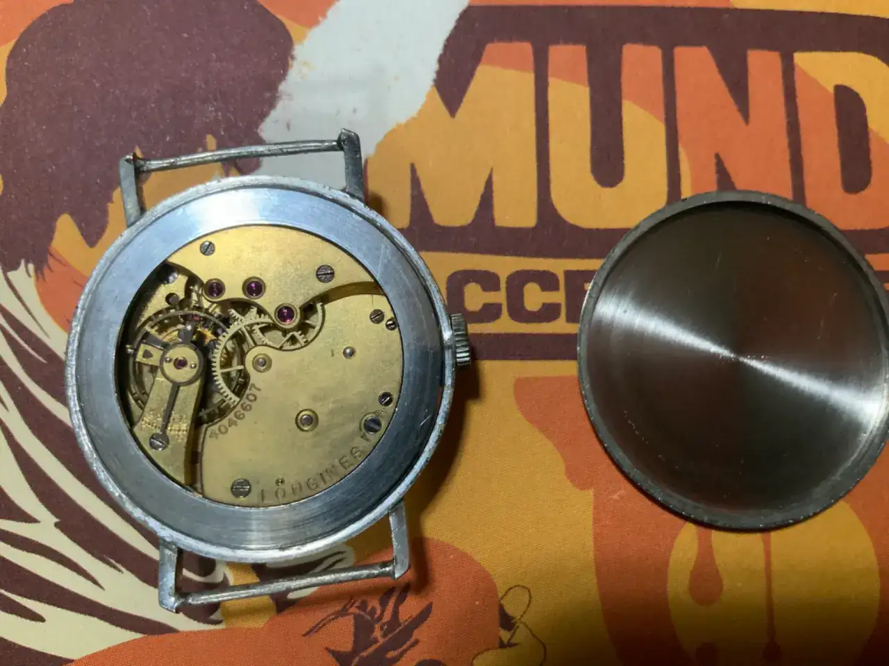 ¿Pudiera ser que Longines hubiera usado ese tipo de calibres y algún relojero hubiera aprovechado la caja para meter un Mondia que fue de oro? En cualquier caso, parecen coetáneos.