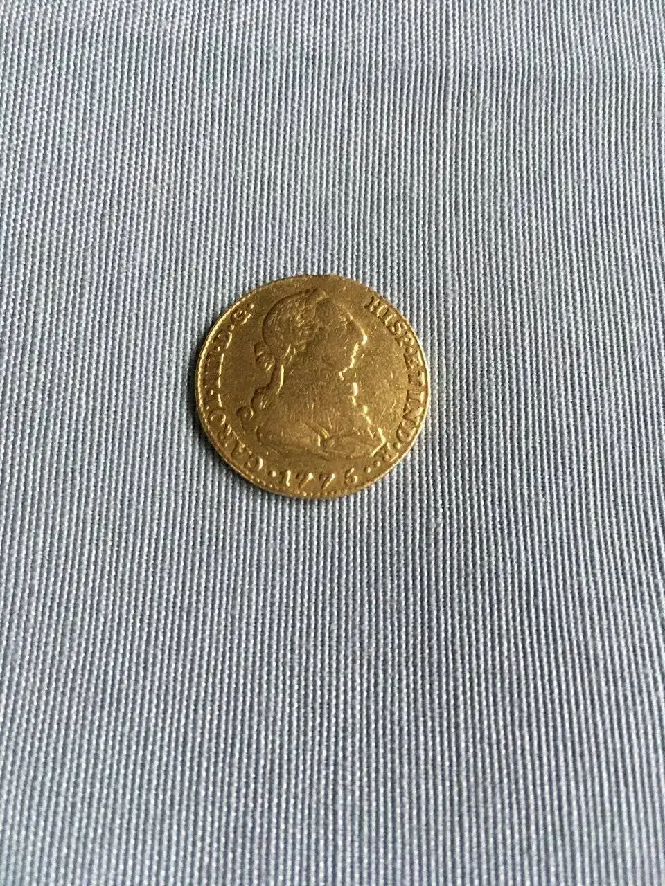 2 escudos Carlos II, 1775 con un peso en bruto de 6,7g que son 6,03g de oro puro en 415 euros.