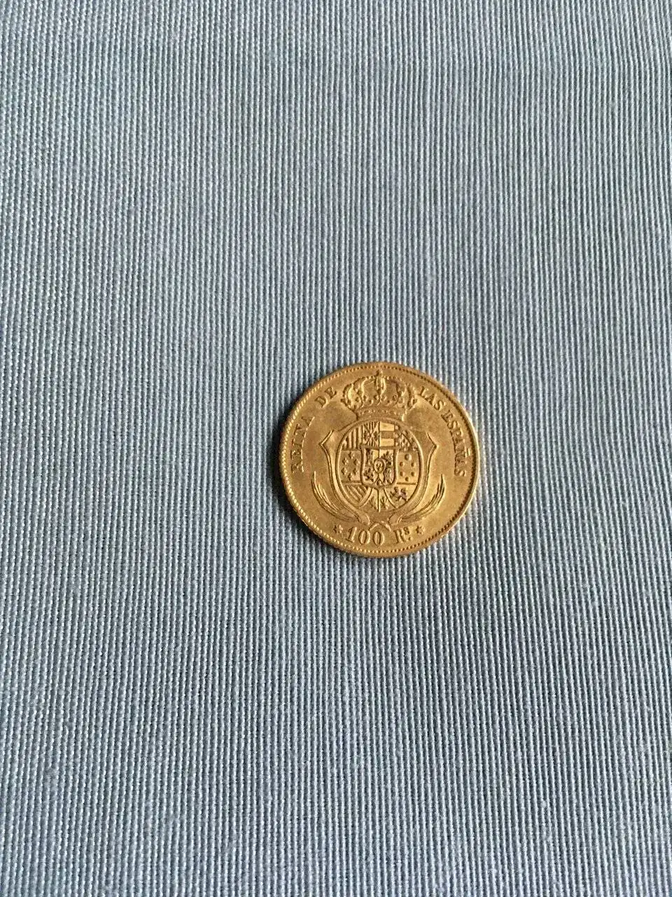 100 reales Isabel II, 1862 con un peso en bruto de 8,3g que son 7,47g de oro puro en 515 euros.