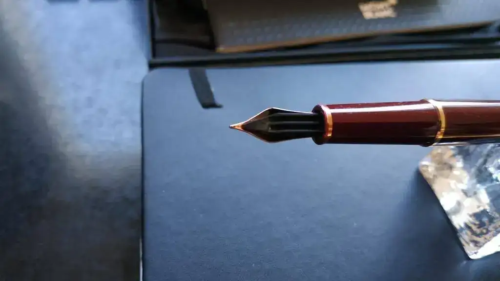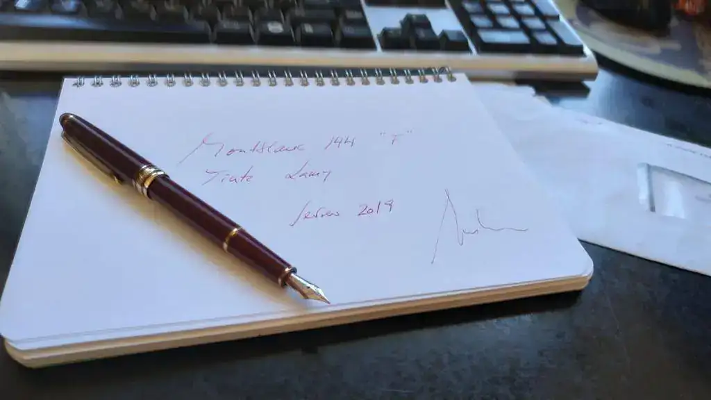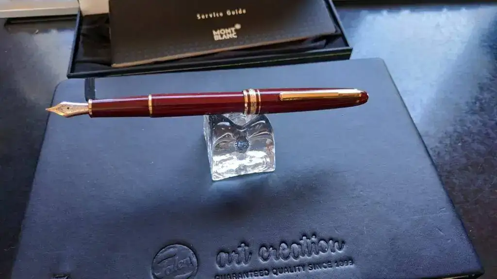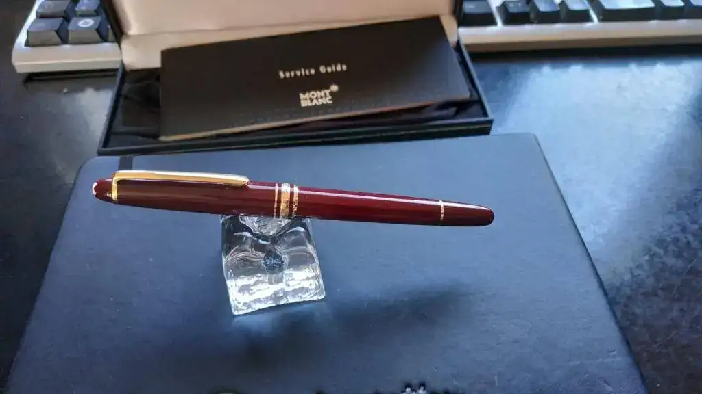 Ofrezco esta Montblanc 144 en una maravillosa laca color Bourdeos, comprada hace casi 20 años con un solo propietario muy poco uso y en perfectísimo estado. Conservo su estuche original, la caja y la documentación. El punto es entre F y M (la nota está hecha con la pluma).