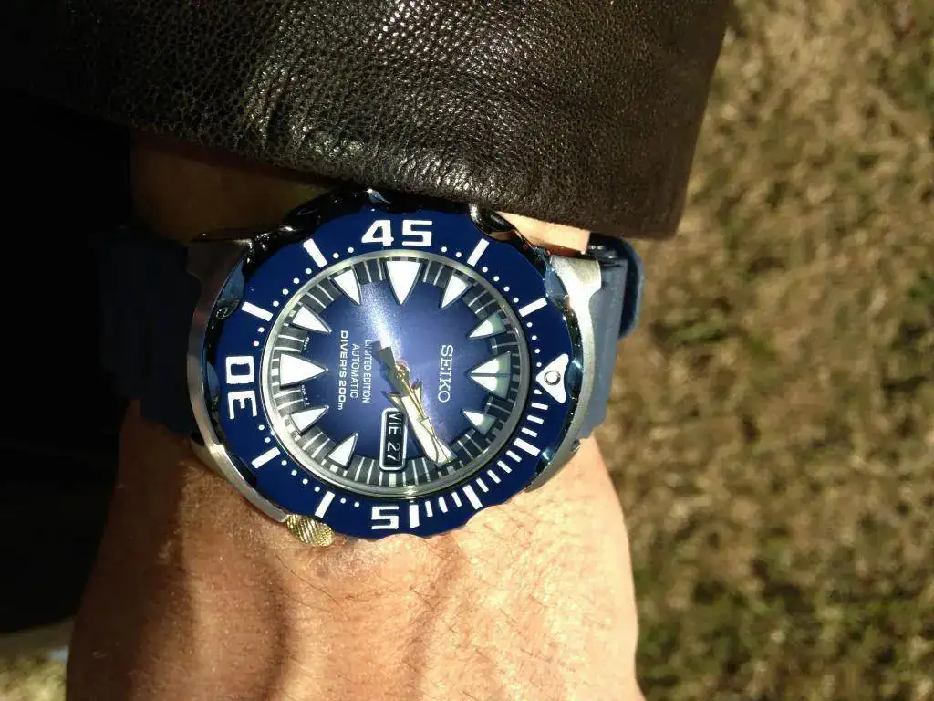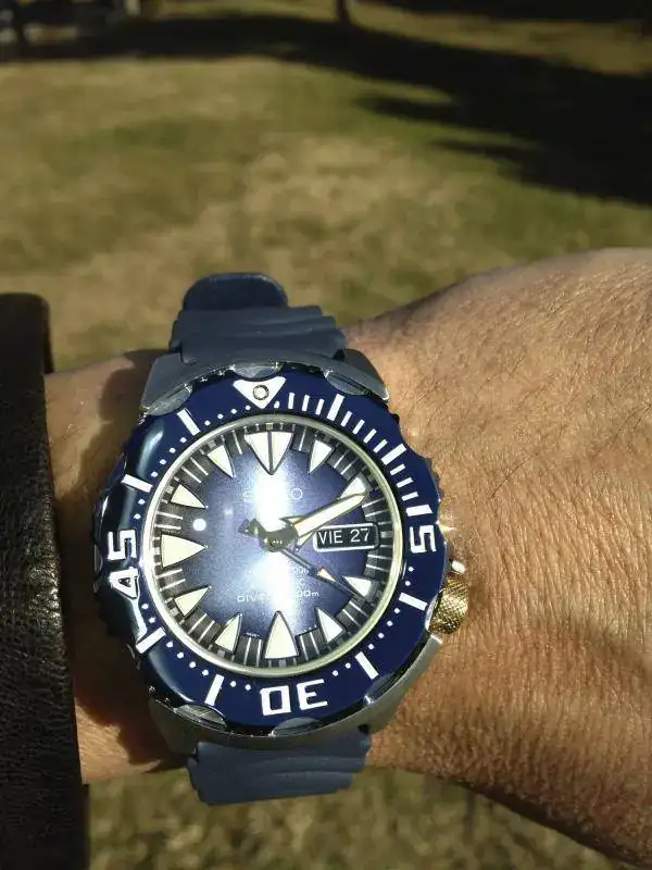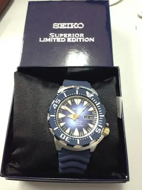 Como todos ya sabeis mas que sobradamente sobre la existencia de los Seiko Monster, no creo que estos dos necesiten presentacion ya que los habreis visto innumerables veces. El caso es que llevaba tiempo detras de estos dos modelos concretamente (aunque el de segunda generacion tiraba mas por el de esfera naranja, pero...) y los he conseguido nuevos con caja, garantia, etiqueta de precio, pegatinas, etc, en una tienda escondida de Madrid y al parecer desconocida para la juventud actual. Hay que reconocer que baratos no han sido y que por su precio podria haberme comprado un reloj Suizo automatico nuevo o seminuevo en condiciones, pero llevaba tanto tiempo detras de estos dos y sin presupuesto, que segun los vi hoy, no me lo creia...sabiendo que estan descatalogados (ya sabemos que Seiko hace mucho esto).