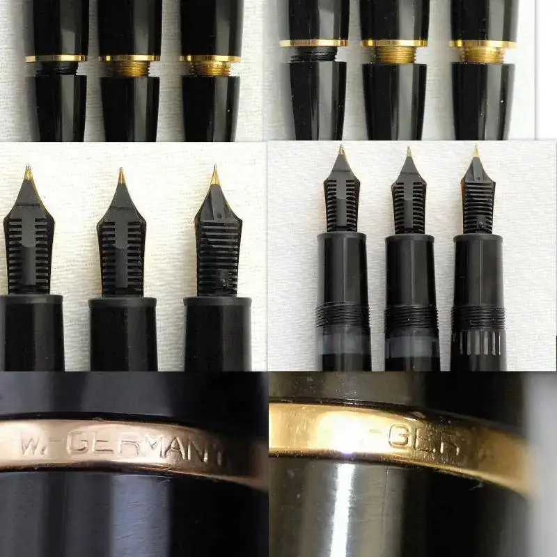 NOTA: Según algunos autores, este modelo de Pluma debería poner W-GERMANY en el CLIP, pero está confirmado que en los años anteriores a la inclusión de la nomenclatura W-GERMANY, MONTBLAC ya grababa sus anillos clip con GERMANY, no podría ser de otra manera, de forma que las dos versiones pueden corresponder al mismo o diferentes entorno de años, además las plumas de edad pueden sustituir alguno de sus elementos por diversos motivos o razones, caídas, roturas o simple deseo del antiguo propietario.