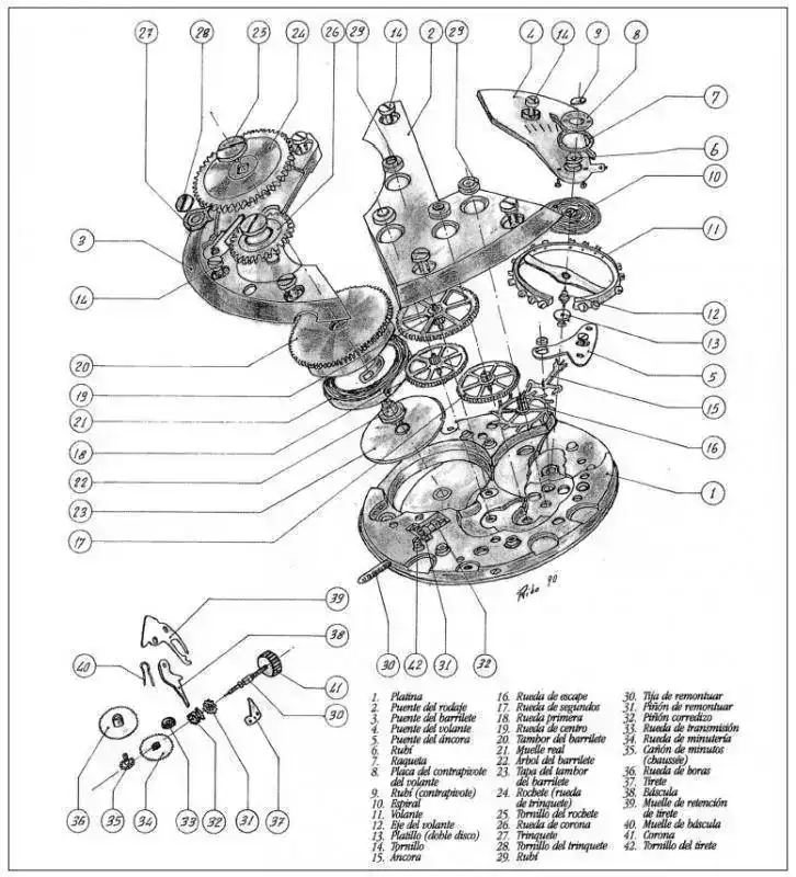 9.- Le damos la vuelta al movimiento. Sin foto.