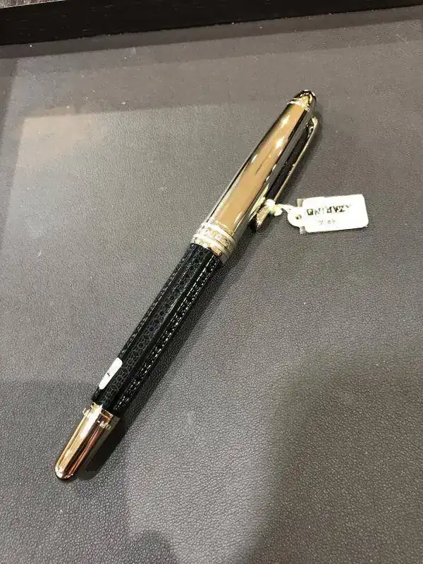 - Plumín artesanal de oro de 18 K con incrustación rodiada