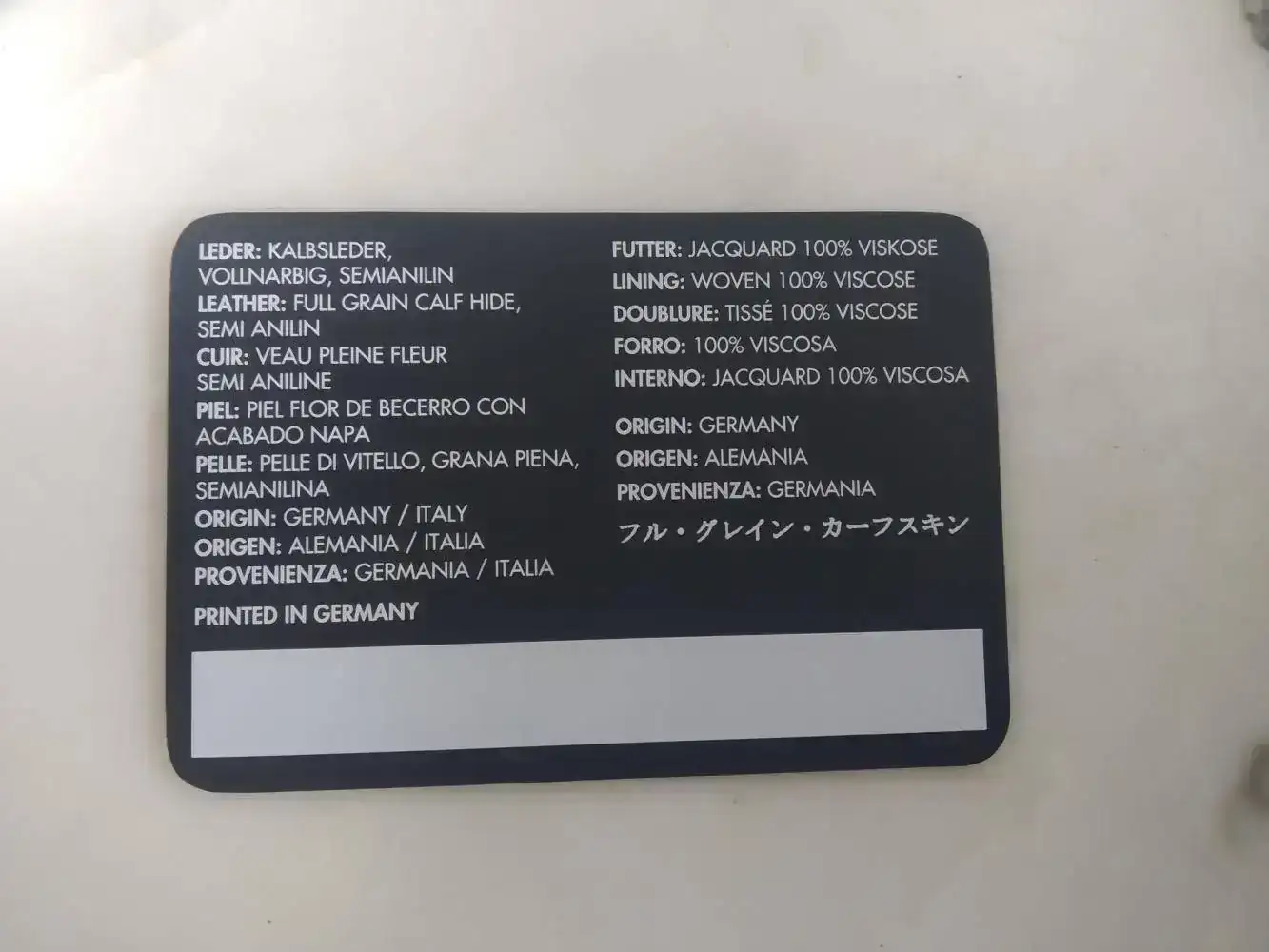 Aquí la tarjeta que viene con una de sus carteras.