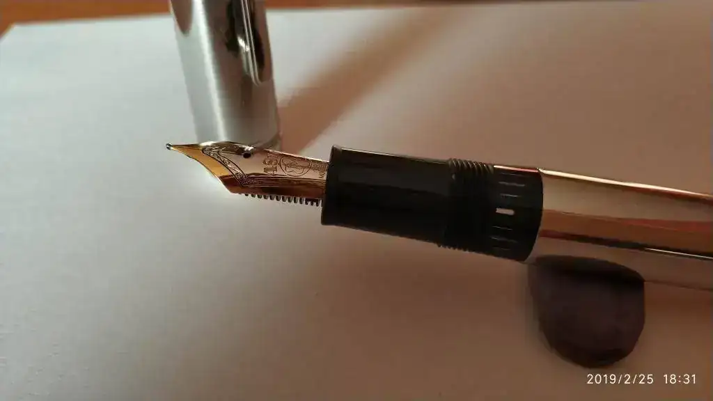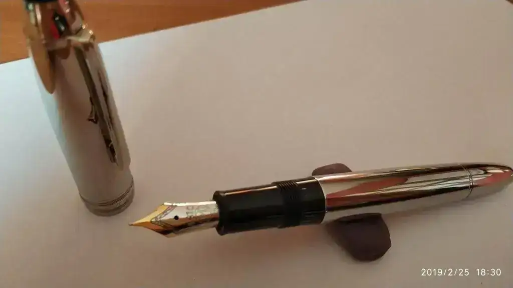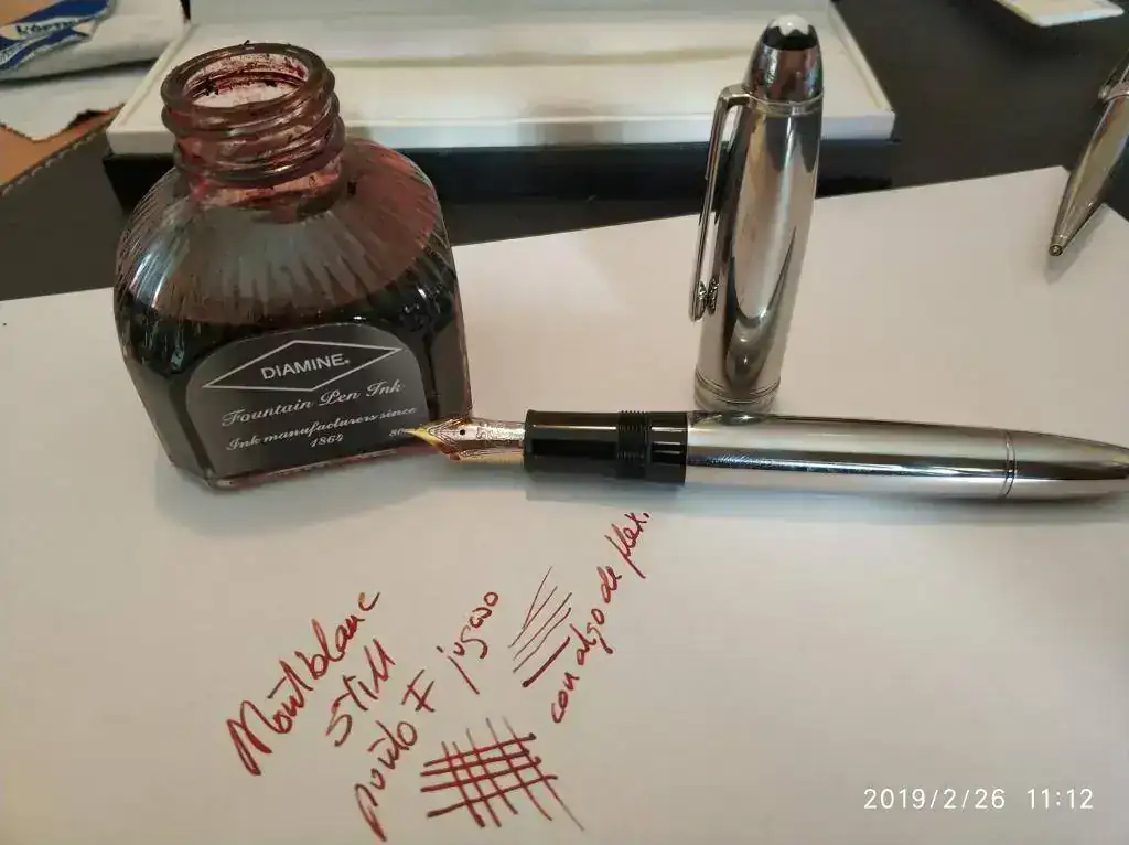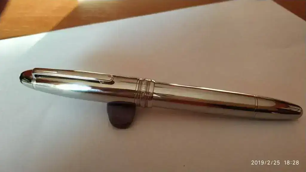 Pongo a la venta esta pluma de finales de los ochenta principios de los noventa, Montblanc 146 all still, acero cromado, y plumin bicolor 18 kt, con algo de Flex, punto F jugoso. la misma está en excelente estado no presentando ni grietas, ni picadas, ni abolladuras, ni rayas en el metal. Se suministra con caja original Montblanc, sin papeles.