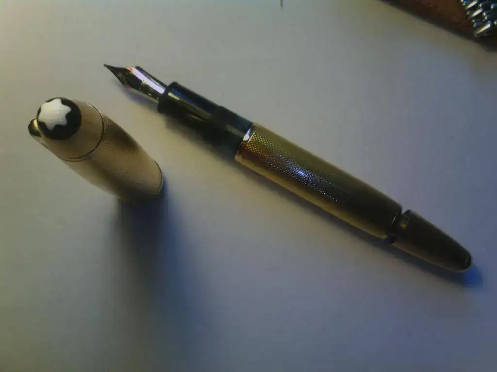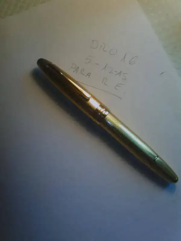 Os ofrezco esta maravilla para los ojos de montblanc 146 dorada, no tiene número en el clip y pone "w germany", por lo que es veterana. Solo se ha cargado una vez y escribe de fábula. El plumín es de 18 k y bicolor, cobrizo por el borde y plateado en el centro.