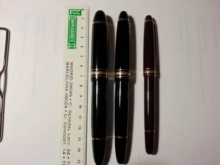 El primer día que pasé por el bunker me enseñaron dos MB: la 149 a la que no presté mucha atención y otra mucho más ligera pero yo diría que con una forma muy similar. Forma, clip, anillos,... parecía la 149 pero mucho más estrecha y pequeña. Me recordó mucho por tamaño a las Parker Slimfold. El caso es que yo estaba convencido que era la 146. Busqué la cifra por el anillo y no estaba. Es una pluma a presión, no a rosca. No recuerdo si el plumín era similar a la 146/149. Tampoco recuerdo si llevaba émbolo o cartuchos. Creo que la defensora del bunker me dijo que iba con cartuchos