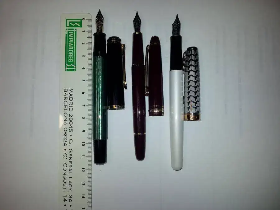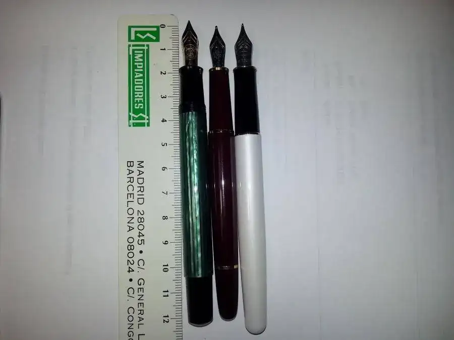 Yo creo que es una 144. Tengo entendido que ese modelo no lleva escrito el número 144. Me suena haber leído un número largo (quizás 4810). La miré poco y sin lupa. No tenía pegatina y sospecho que ésta si habrá sido usada. No sé si mucho o poco y bien o mal usada pero sin ningún argumento a favor o en contra tengo la sensación de que es una pluma usada. Desconozco el tamaño del plumín. Pero era una pluma que encajaba muy bien en mi pequeña mano.