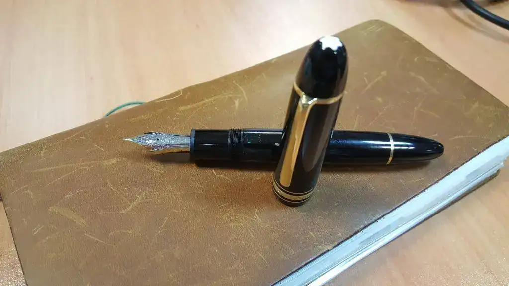 Se trata de una Montblanc 149 de principios de los 90. Tiene el clip grabado con W-GERMANY y el número de serie. La rosca del embolo de latón y el alimentador de plástico. Plumín de 18Kt bitono. Venía marcada con la pegatina del punto EF (que eliminaron al hacerle la revision en el servicio oficial de MB en Noviembre).
